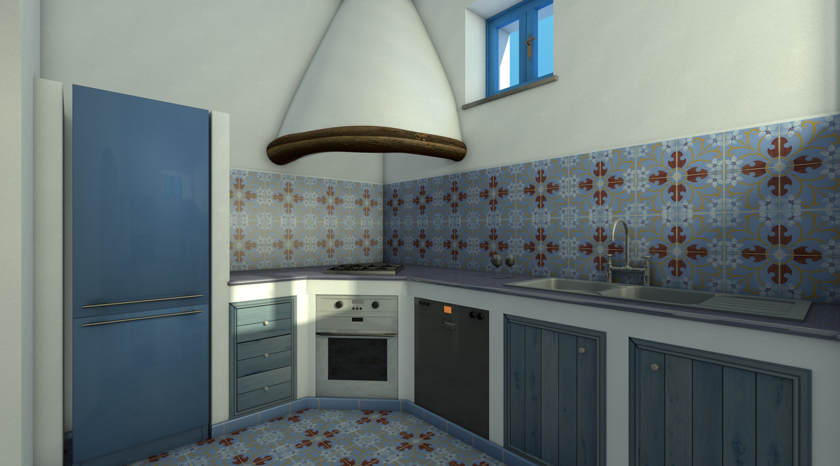 salve a tutti, vi mostro il mio promissimo render d'interno, si tratta di una cucina in muratura,