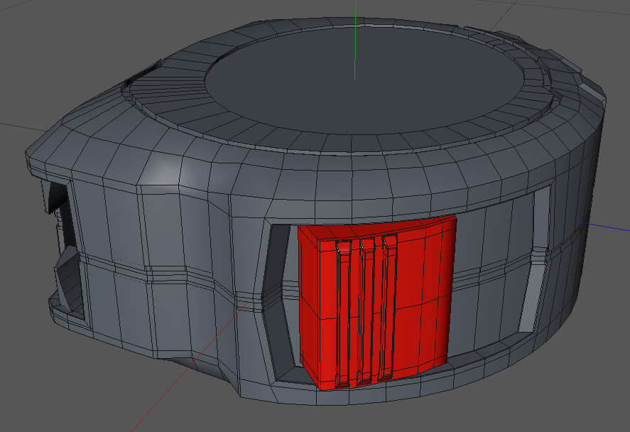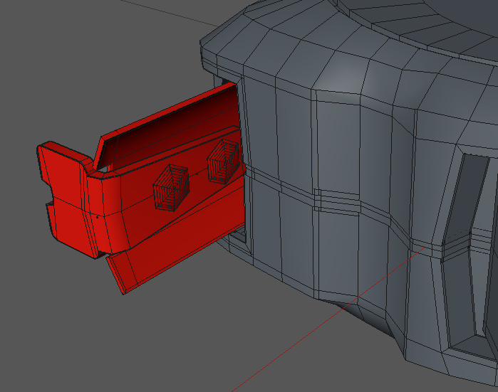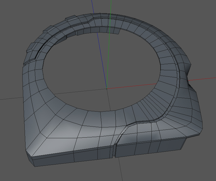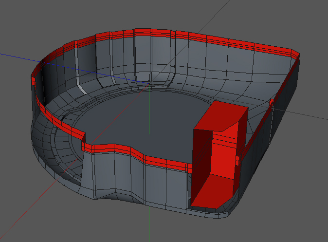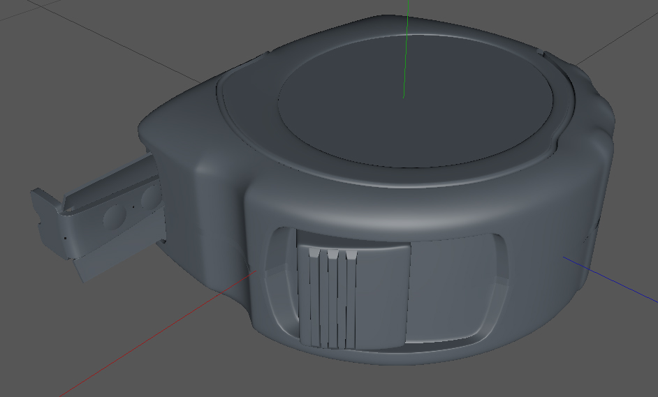 Attraverso il profilo di metà oggetto, ho creato la parte centrale, creando anche la rientranza nella parte bassa e cancellando i poligoni nella parte del alta (dove va posizionato il tasto per bloccare il metro)..