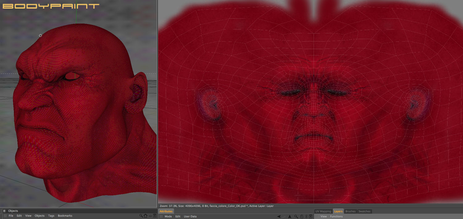Sempre col modello "hi poly" sono passato in Body Paint e ho pitturato la texture del viso.