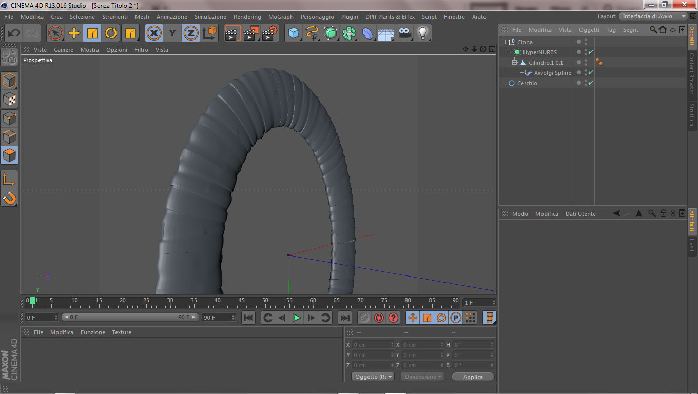 Secondo me, ti conviene modellarne un pezzo ( un cilindro ) clonarlo con mograph e avvolgerlo ad una spline...