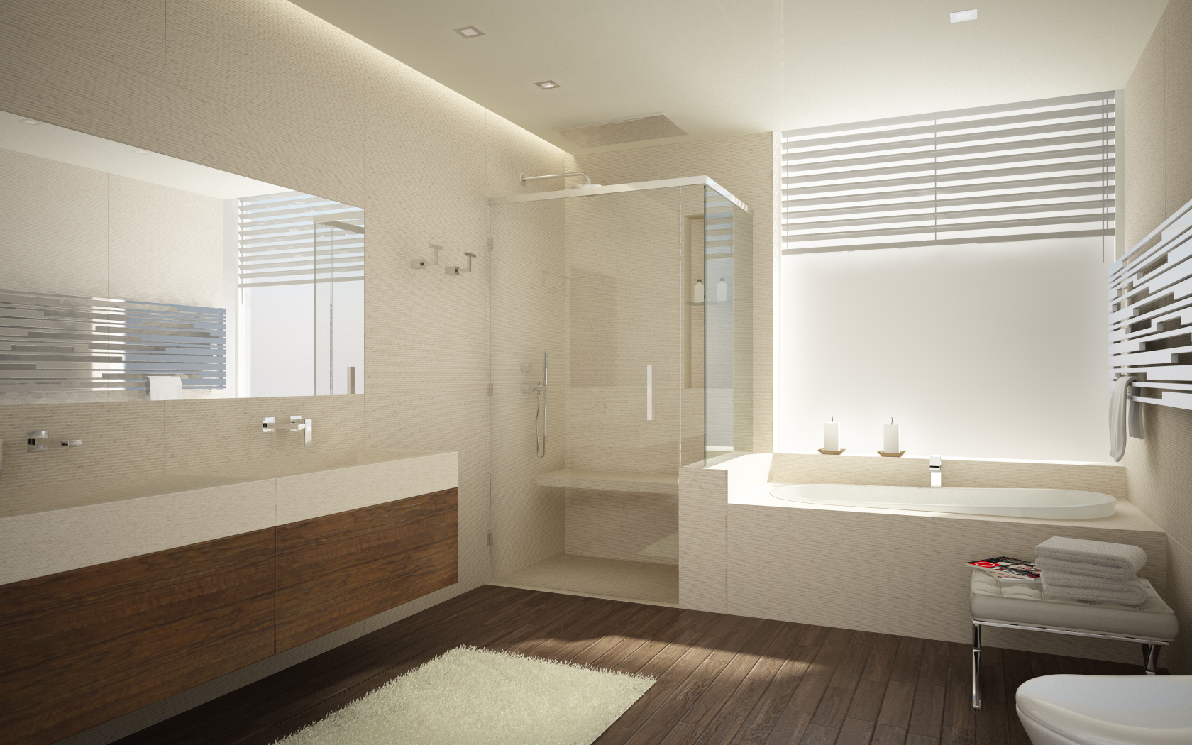 mi sembra che si perda un pò la zona lavabo. si vede molto poco. inoltre al posto dello sfondo "cielo" della finestra metterei un pannello luminoso o applicherei la luce ara all'oggetto vetro.