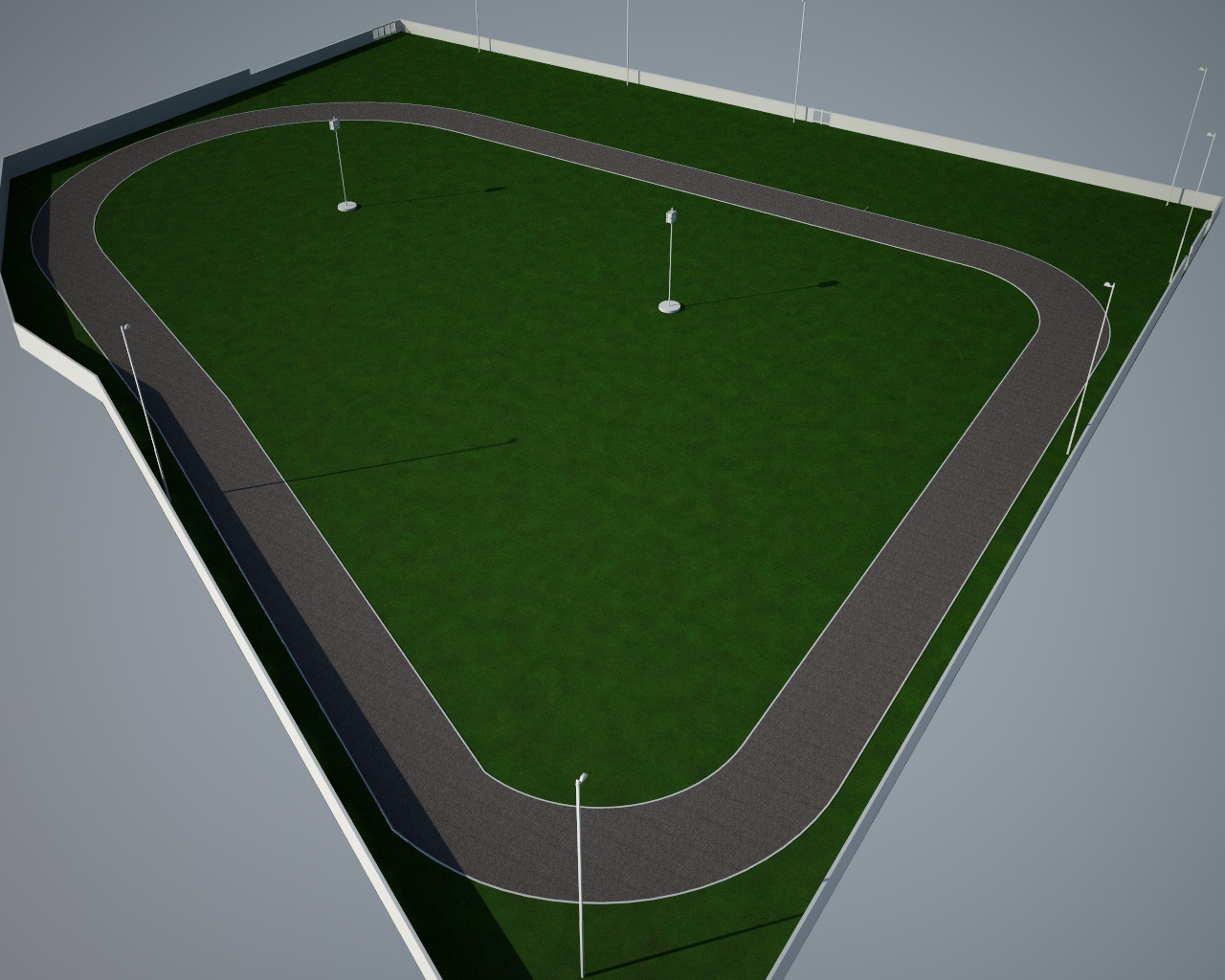 Stiamo lavorando ad un render di un centro sportivo, compreso di stabile, pista, percorsi, ed ovviamente un'immenso campo d'erba verde.