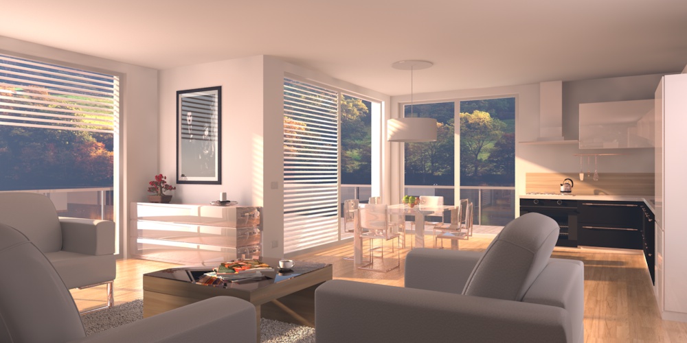 come in 3ds però, la sola luce esterna non è sufficiente...necessiti di luci di rinforzo(luci area)poste in prossimità delle finestre