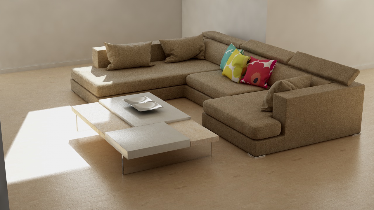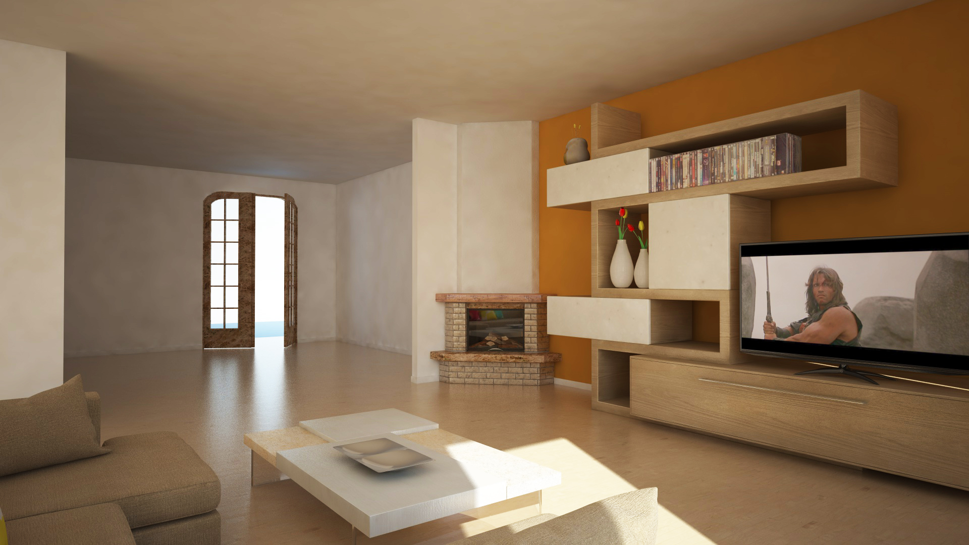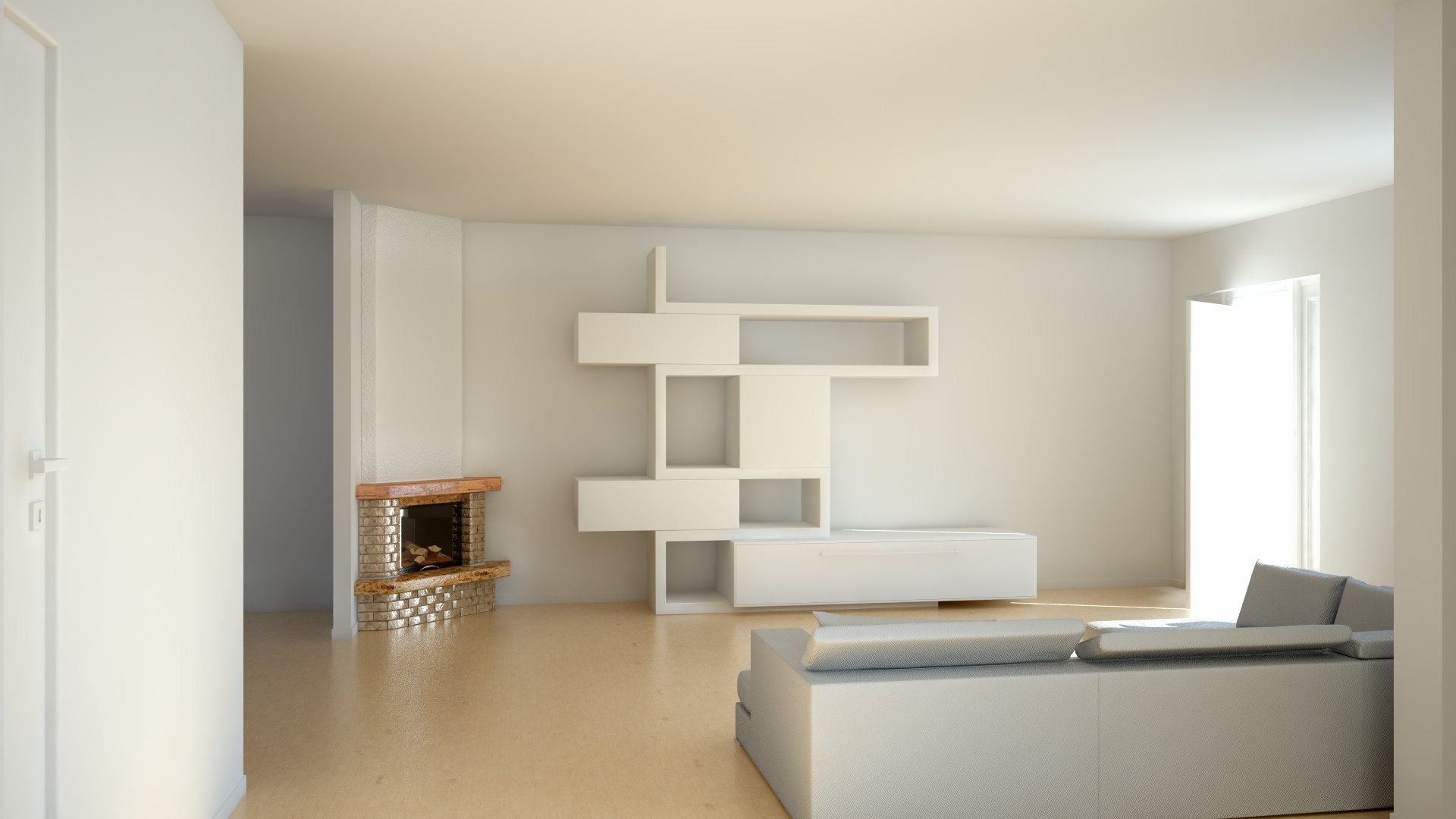 Per ora mi sono cimentato nella sala con un divano, un tavolino, un camino e abbozzato un mobile da TV.