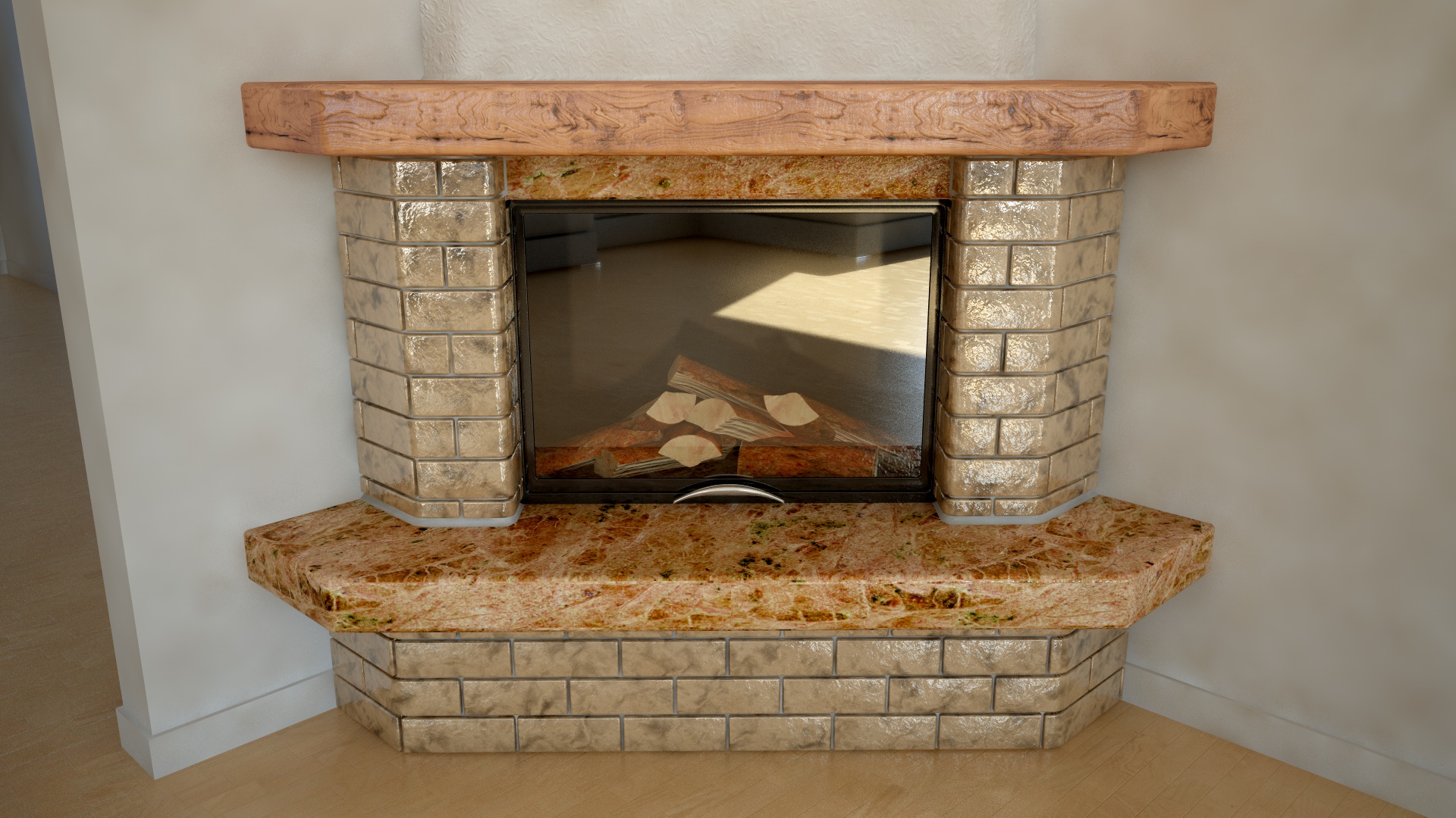 Fermo restando che quoto il fatto che il camino sbatte con lo stile moderno, ti suggerisco di rivedere lo specular layer dei mattoni... sembrano smaltati...