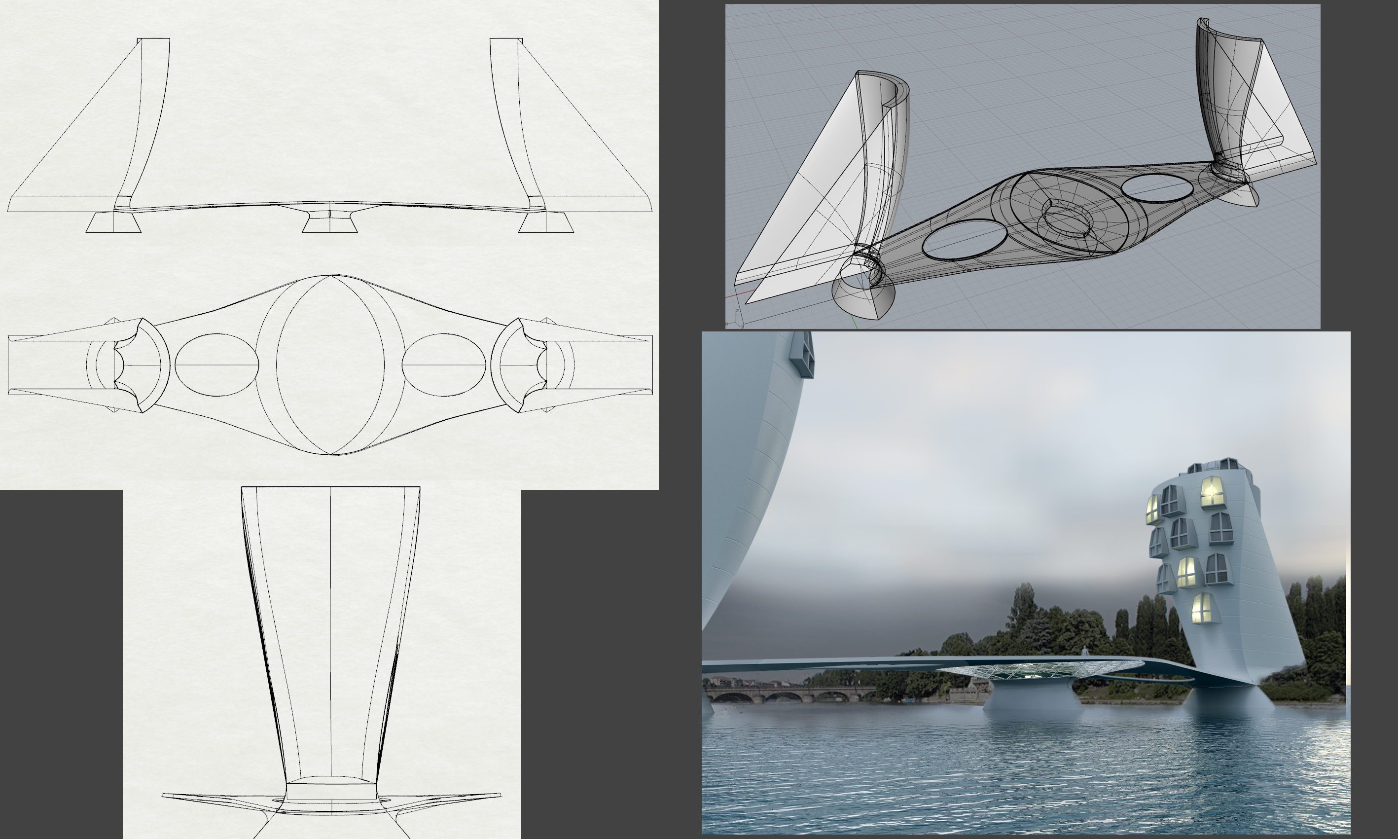Tu vedresti meglio aperture in "negativo" o una forma diversa ai bow windows? come detto prima è modellato con l'accetta..ma il concetto è di avere prismi abitati lungo il fiume con aperture sospese come lanterne...Platone wrote:L'idea mi piace molto ma trovo che quei bow window stonino parecchio...non si abbracciano per nulla al tipo di struttura...proverei a rivederli...ovviamente opione personale