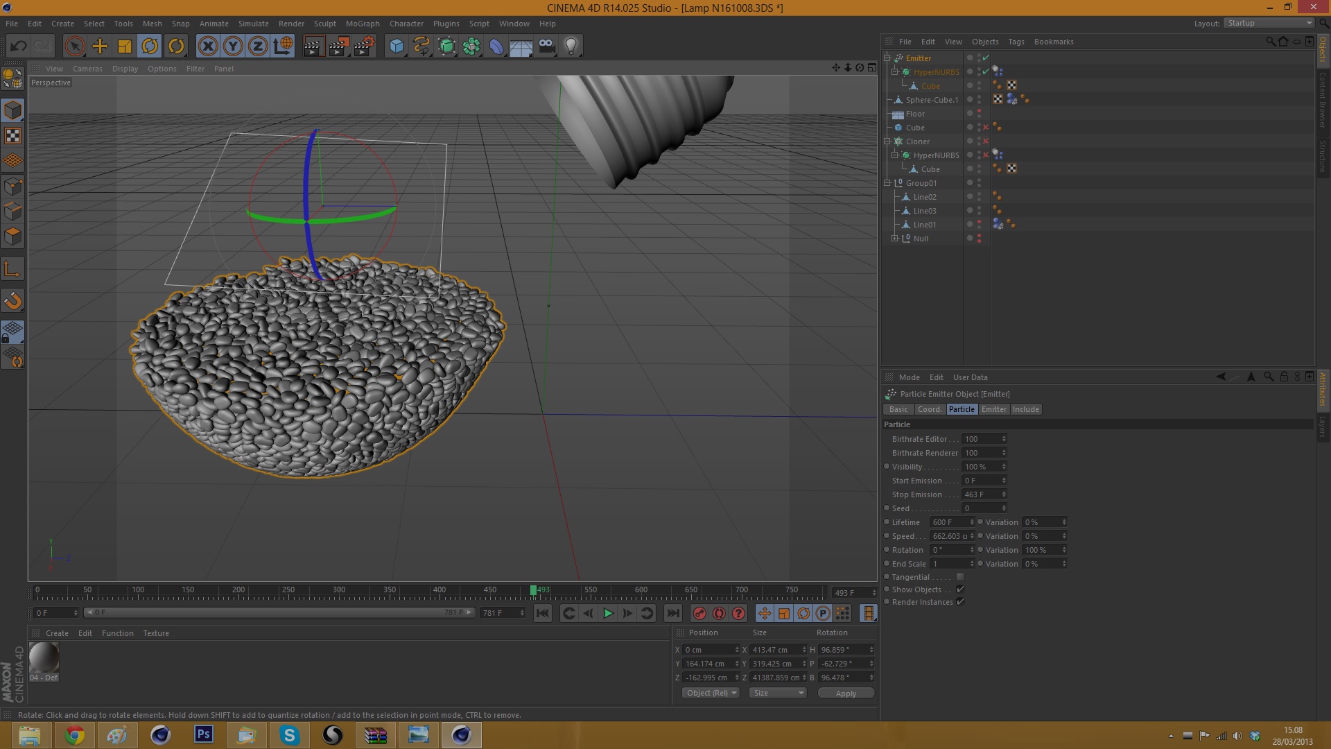 intanto potresti fare una lampadina con meno poligoni ed ottimizzare quindi la scena, poi potresti usare uno strato di mesh sotto che non si vede e uno strato sopra di sassolini irregolari fatti cadere con mograph e dinamiche