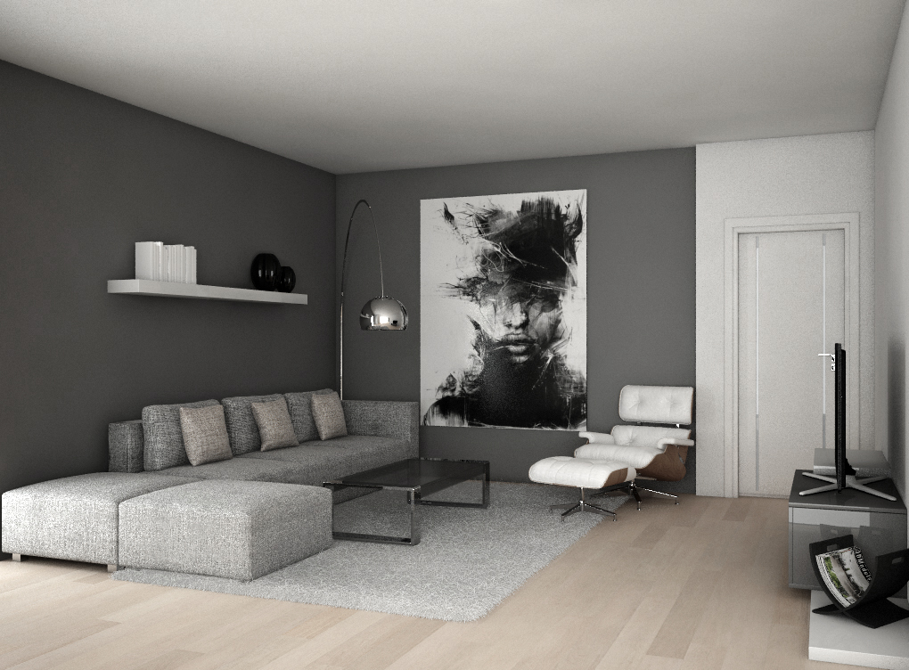 Poi non so se questa sarà l'inquadratura definitiva: fosse così, curerei alcuni particolari compositivi, tipo l'allineamento di certi elementi, ad esempio il bordo sx del quadro sarebbe meglio non fosse allineato nel senso verticale col bordo del divano, lo spigolo in basso a dx del quadro che tocca la sedia, e così anche il bordo dx della sedia che è a filo col muro grigio. Anche la TV, vista di taglio non è il massimo. Naturalmente sono piccole cose, che non cambiano il senso generale dell'immagine…