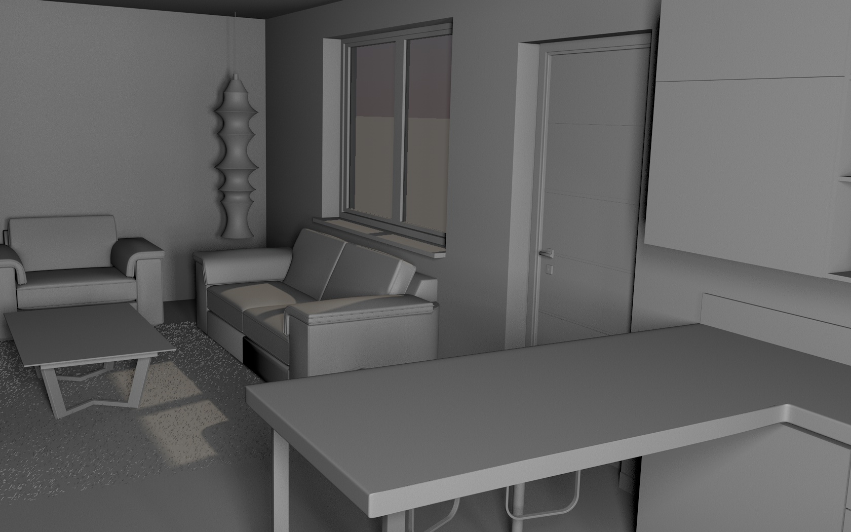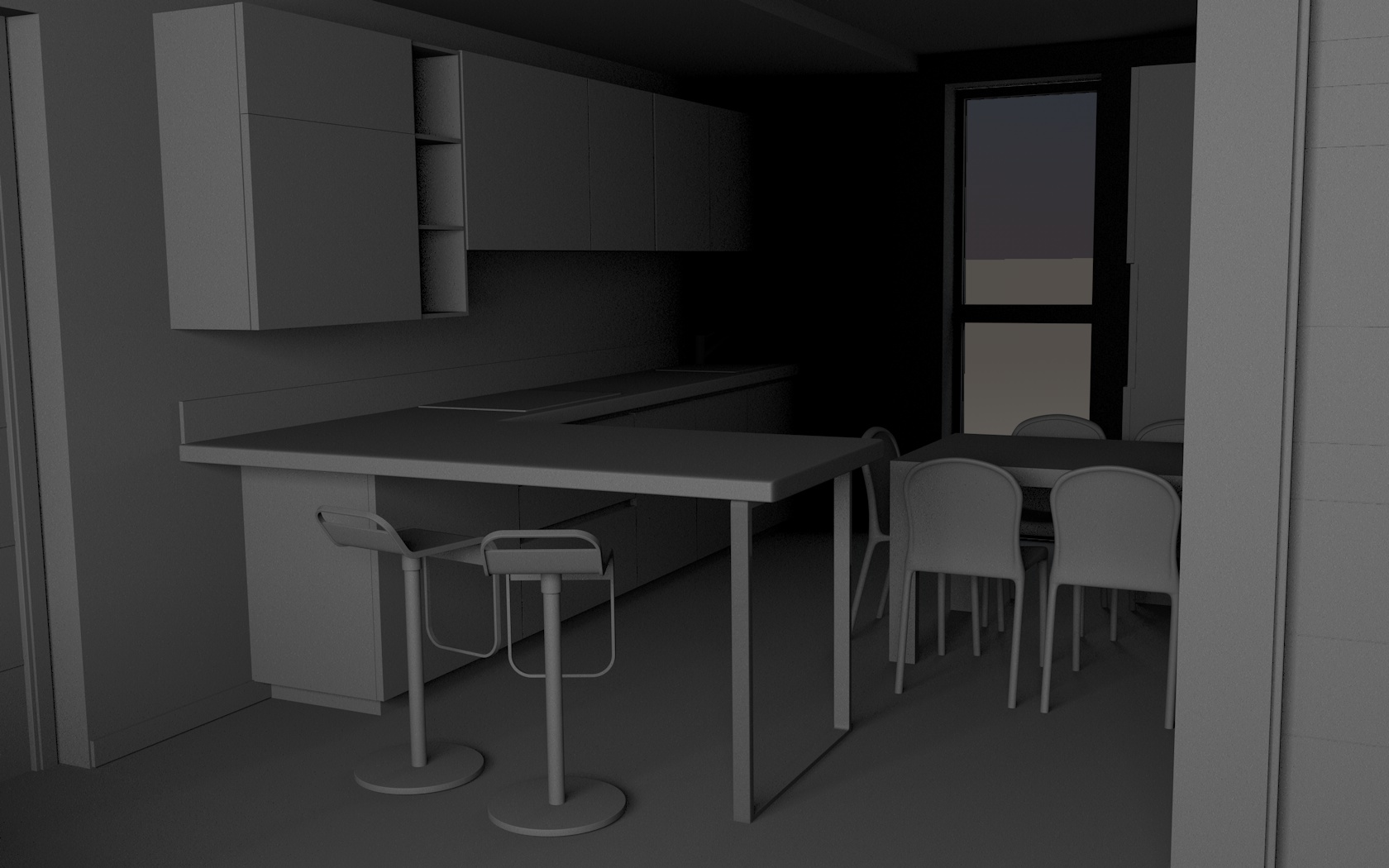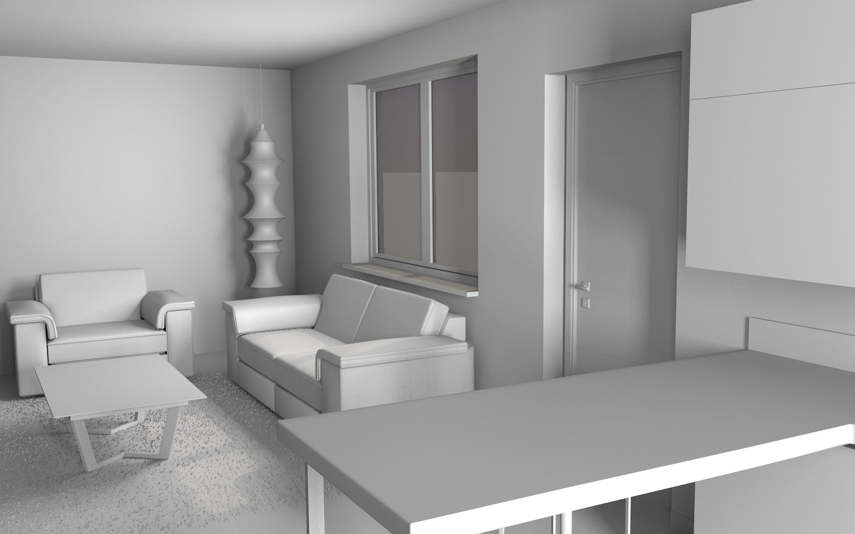 Magari prova a settare nei parametri progetto su grigio 80% cosi rimane più "bianca" la scena . Poi vorrei chiederti quante aperture ha la stanza a parte la finestra che si vede .