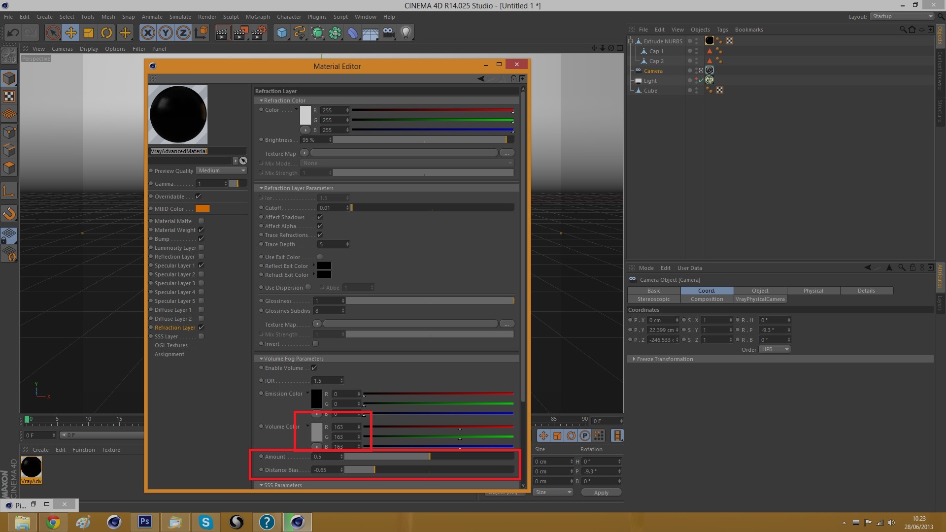 mm il distance bias non ti incide sulla trasparenza, al limite diminuisci l'Amount del volume, fai più chiaro il Volume Color oppure aumenta il Brightness del Refraction Color. Considera anche che c'è il diffuse attivo, trasparente al 60% circa, se aumenti la trasparenza del diffuse si vedrà di più il canale della rifrazione sottostante.