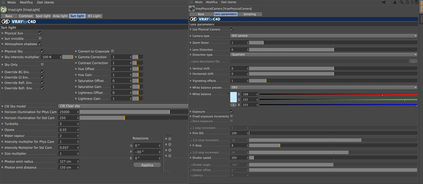 ho fatto una prova con le luci, vi posto impostazioni camera e luci