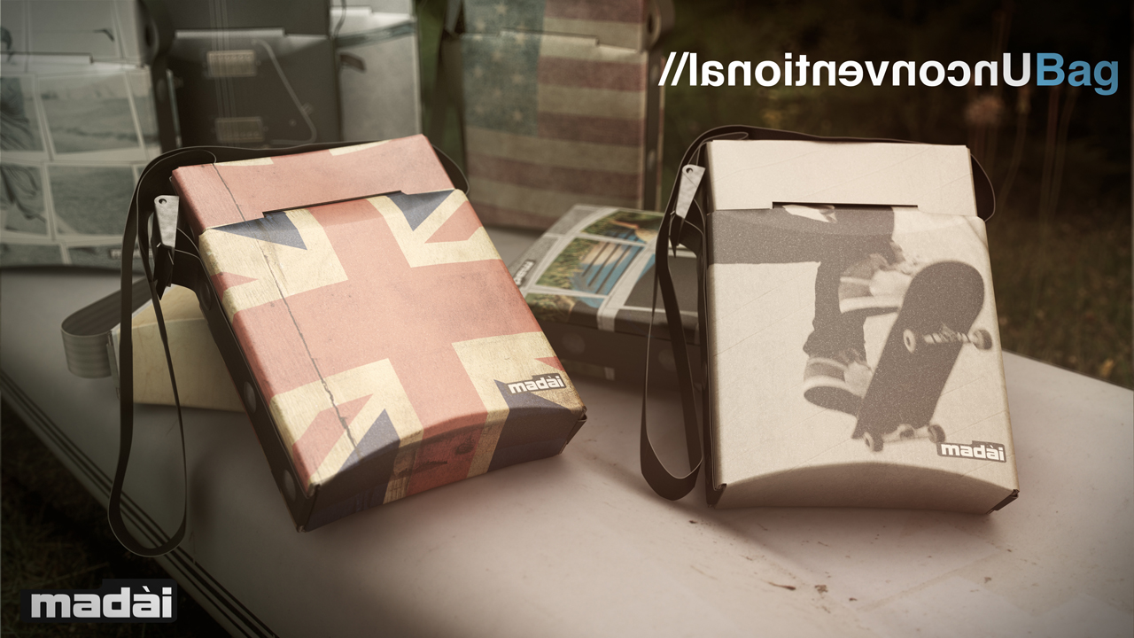 "We daily deal with experimentation in the field of design and communication.We dissect .from the materials normally.neglected or underestimated.The idea is to move from everything already well established in the customs and traditions of a society..We chose to stray from pvc and from his peers,staying away from leather, rubber, and any other conventional material.For this reason we decided to create a bag in cardboard, what we all know as a container of fruit, protective packaging for electronic equipment,that we use for everything and we consider the least noble of all...This is how the bags Madài: completely made of cardboard, with colorful and attractive graphics.Cardboard doesn't mean weak!! It means Trendy!The bag is waterproof, ensuring a long strength and life of the same!Ok...you can't take a shower with it or jump into a mud puddle!But under the rain no problem!.The upper closure is fixed joint, the shoulder strap can be adjusted as a function of the stature of the wearer, thanks to a regulator very easy to use.And..most important ..the price is very competitive & affordable."