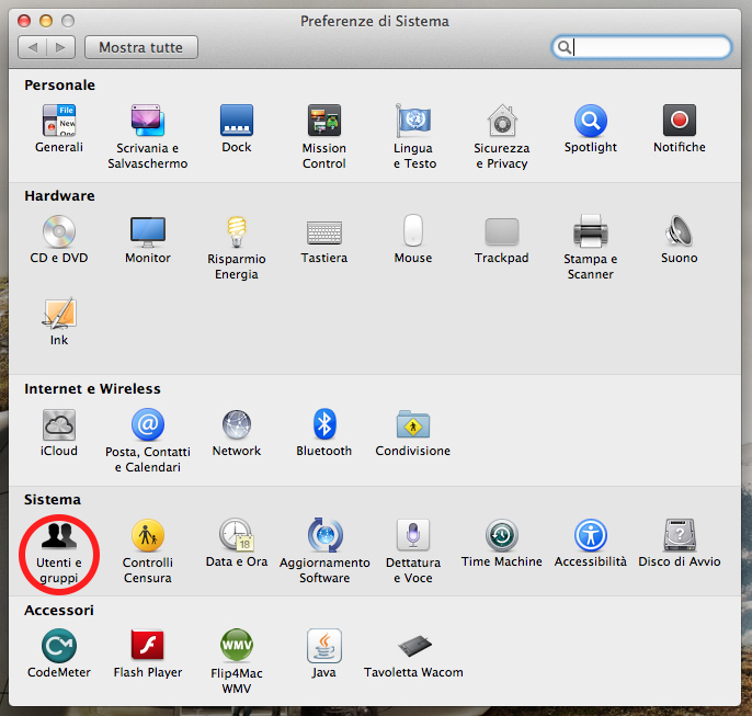 Per fare in modo che lo script parta da solo all'avvio del mac aprite preferenze di sistema e cliccate su Utenti e Gruppi.