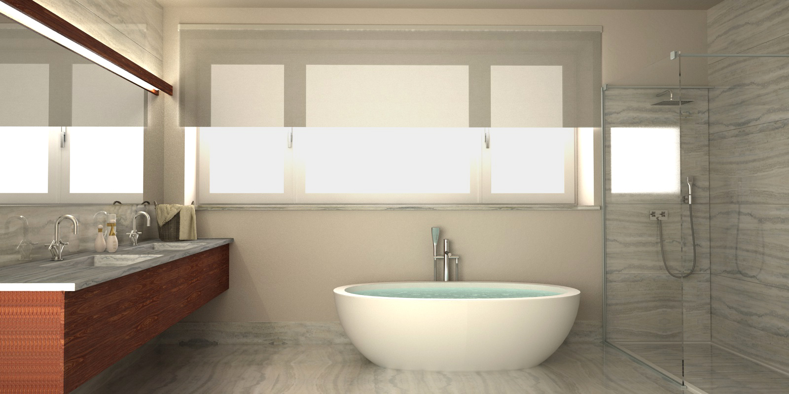 Ho usato una luce area dietro la finestra,più una di rinforzo che punta verso la doccia.