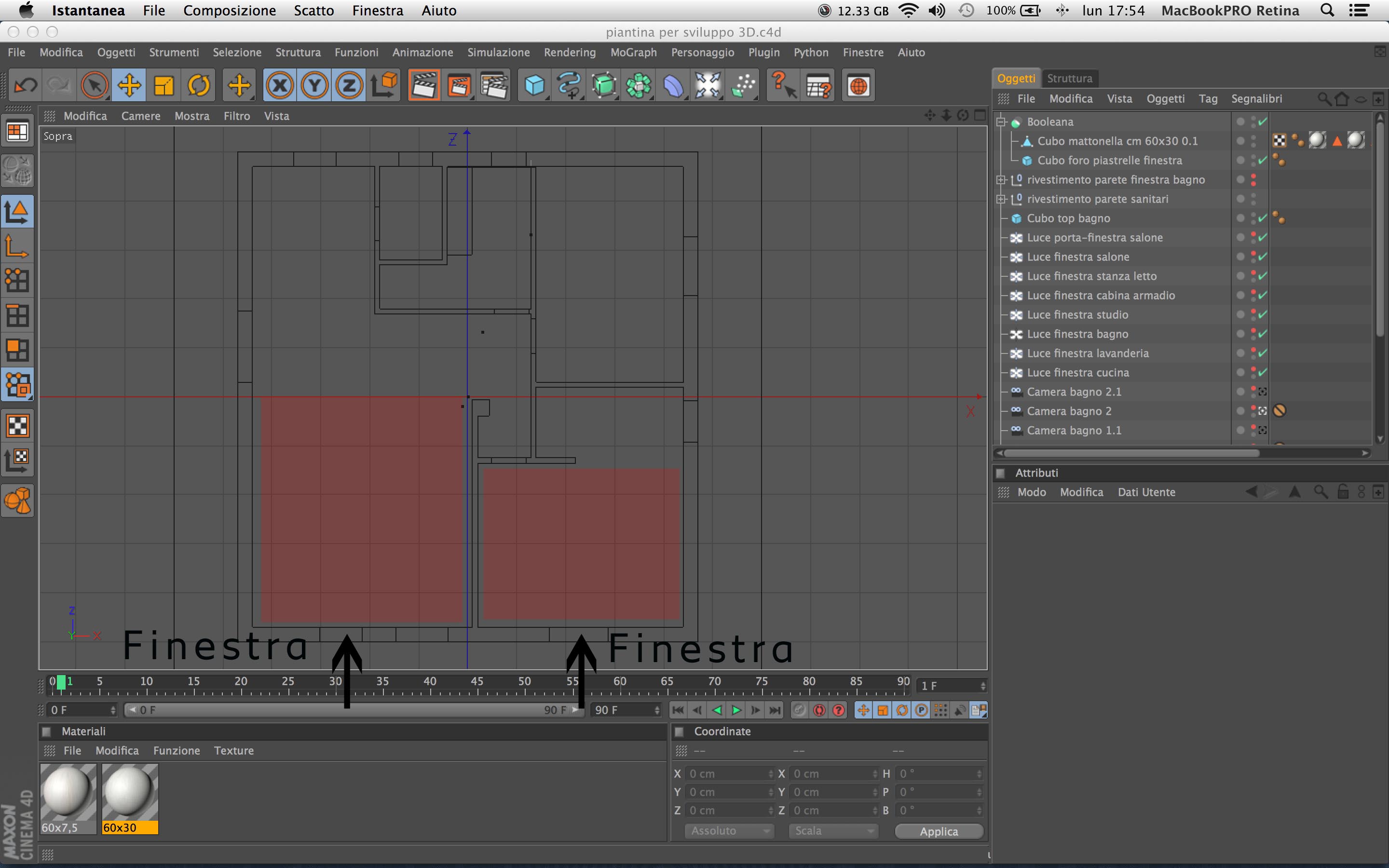 Ricordo che le finestre della vila sono già aperte con operazione Booleana. Le piastrelle sono sovrapposte.