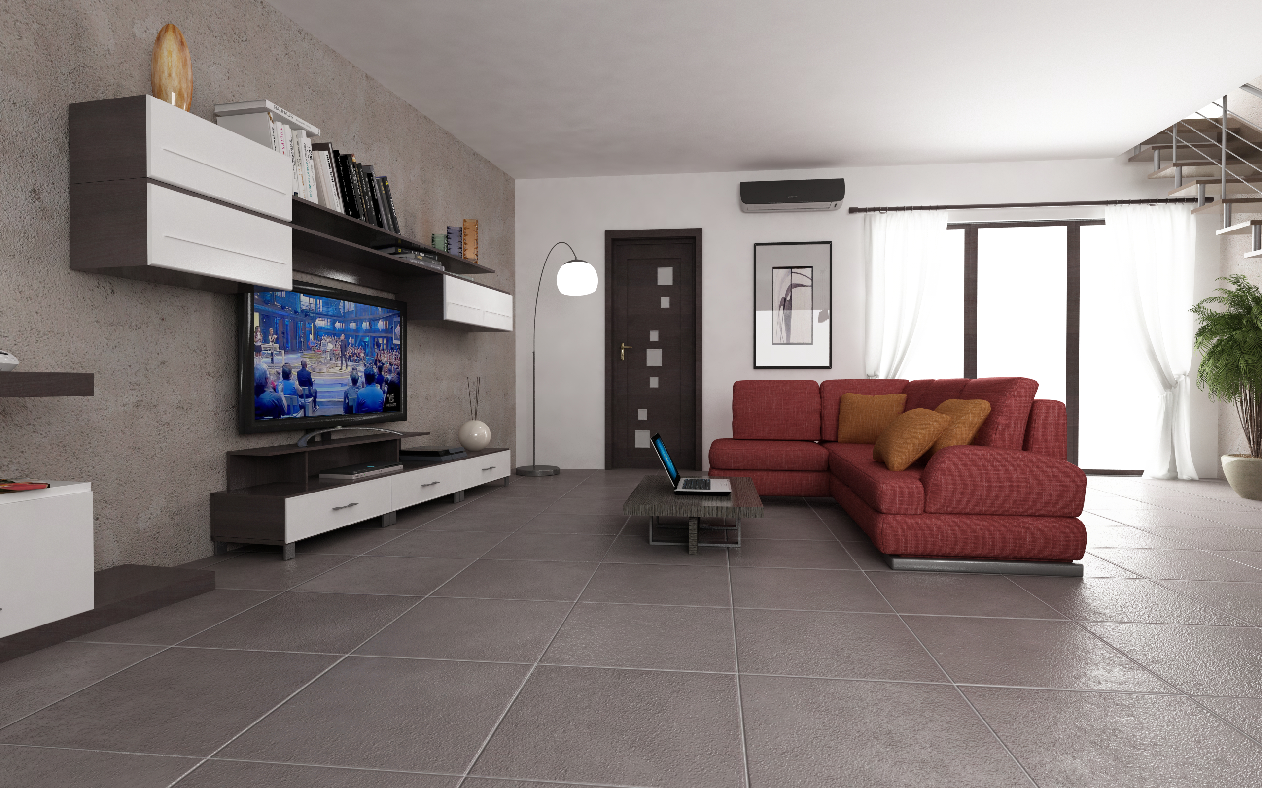Il tempo di render è tra le 2 ore, 2 ore e 30 min ho provato ad alzare un po i valori per eliminare le macchie scure sui muri e ci sono riuscito ma il tempo è aumentato a 12 ore a immagine.