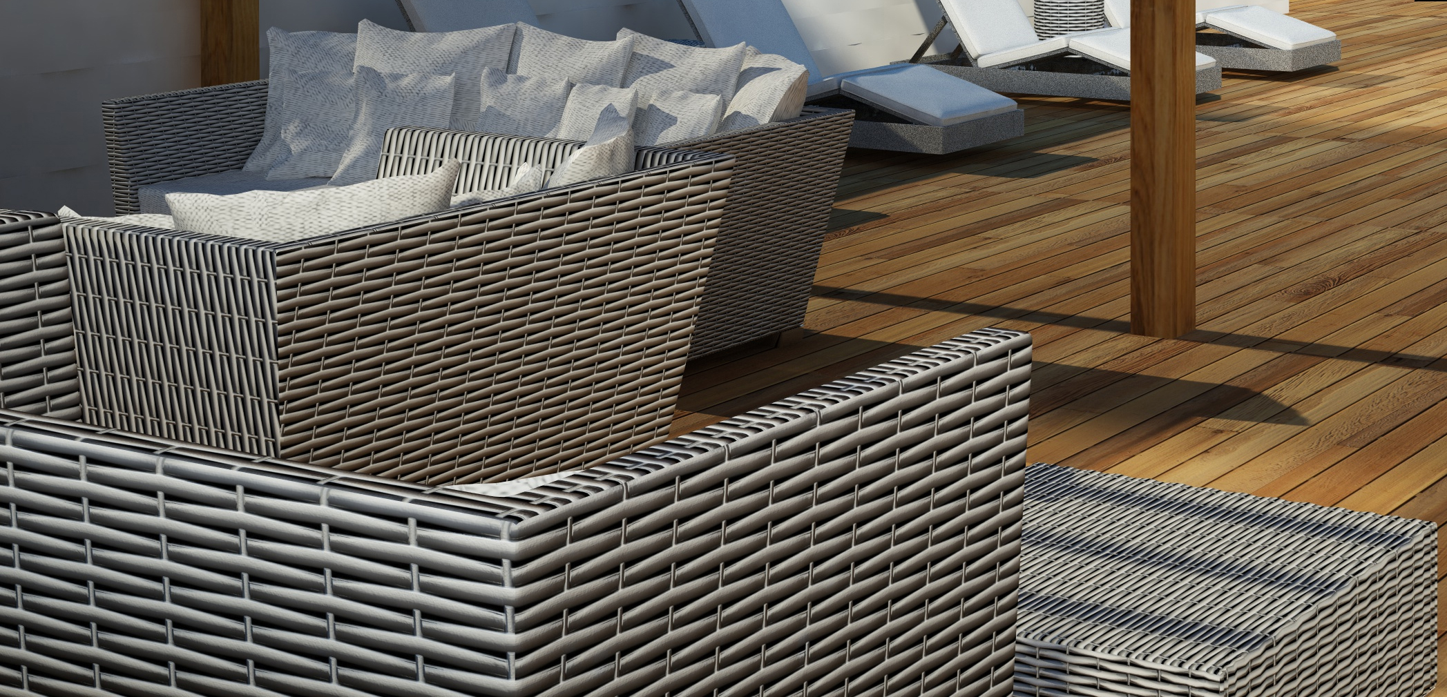 Parlo di divanetti da esterno con struttura stile vimini ad intreccio.