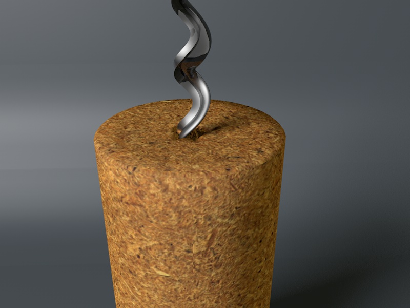 Io ho ottenuto un effetto simile con aggiunta delle scheggie di sughero spezzettando il foro dove entra la punta e deformando la mesh nel momento in cui l'apribottiglia inizia a forare il tappo tramite keyframe. Non male come risultato, ma anche il tuo modo mi garba, per cui ora cercherò di aggiugere qualche pezzetto di sughero che si stacca, alla tua scena di esempio. Vediamo cosa ne viene fuori.