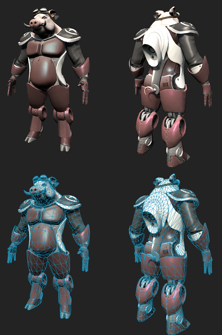 La scelta è stata presa per non 'rovinare' troppo la topologia, il che mi ha facilitato moltissimo il lavoro di retopology per il modello lowpoly (praticamente è quasi lo stesso modello di partenza, prima che venisse suddiviso, con i vari loops di controllo),