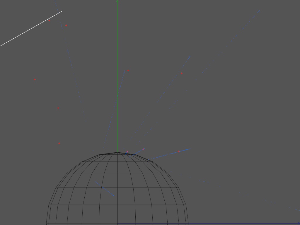 Faccio emettere una particella (goccia) che colline su una superficie, a questo punto tramite il nodo deflettore ottengo l'evento, la posizione dell'evento, la normale dell'evento sulla superficie ( fantastico ) E ADDIRITTURA la normale d'angolo di collisione.