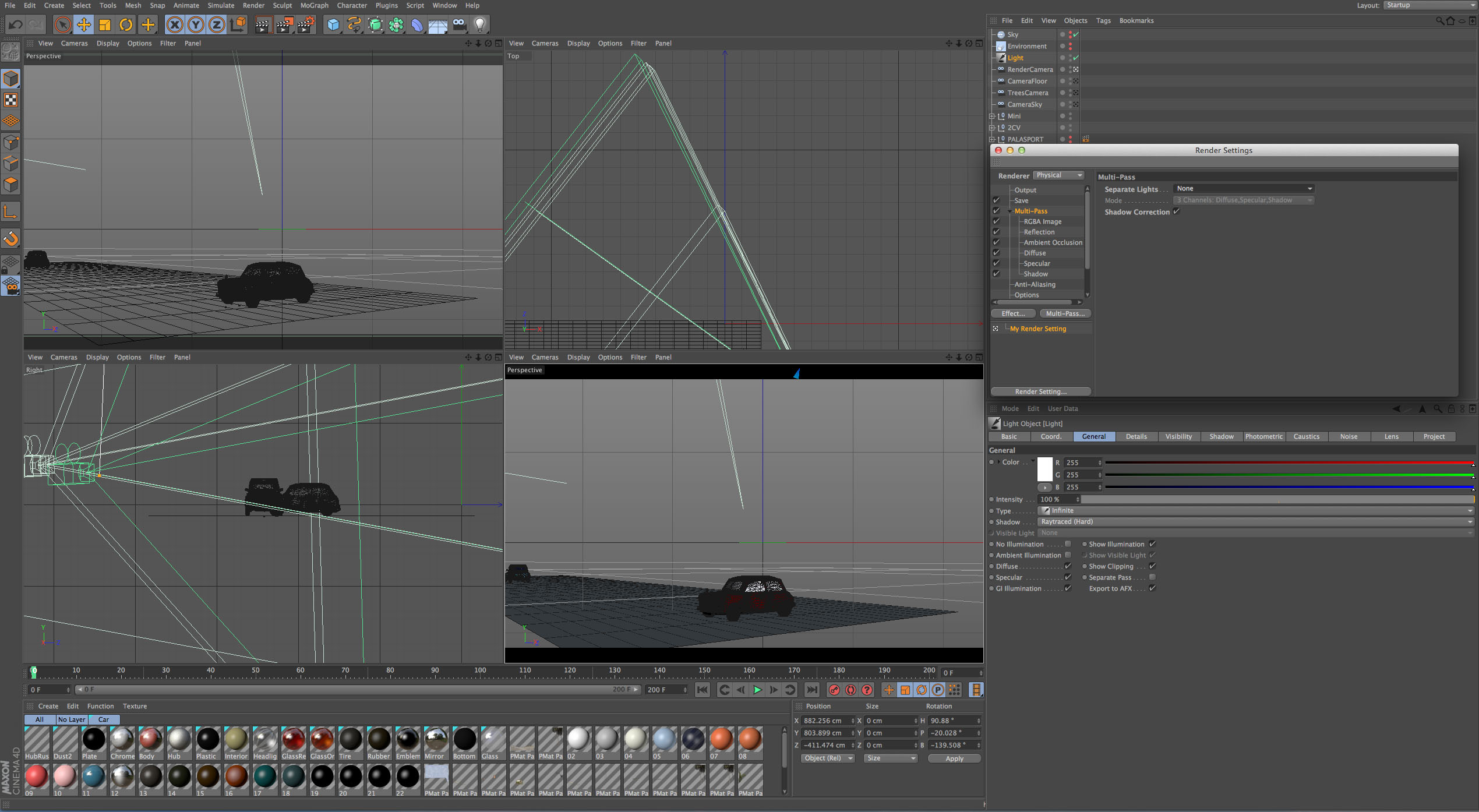 va bene, ma il render come viene ? Nel senso, la luce proietta ombre a terra o no ? :) Se la luce proietta ombre a terra dovrebbero venirti fuori nel pass Shadow senza problemi. Ti allego un file per capirsi.