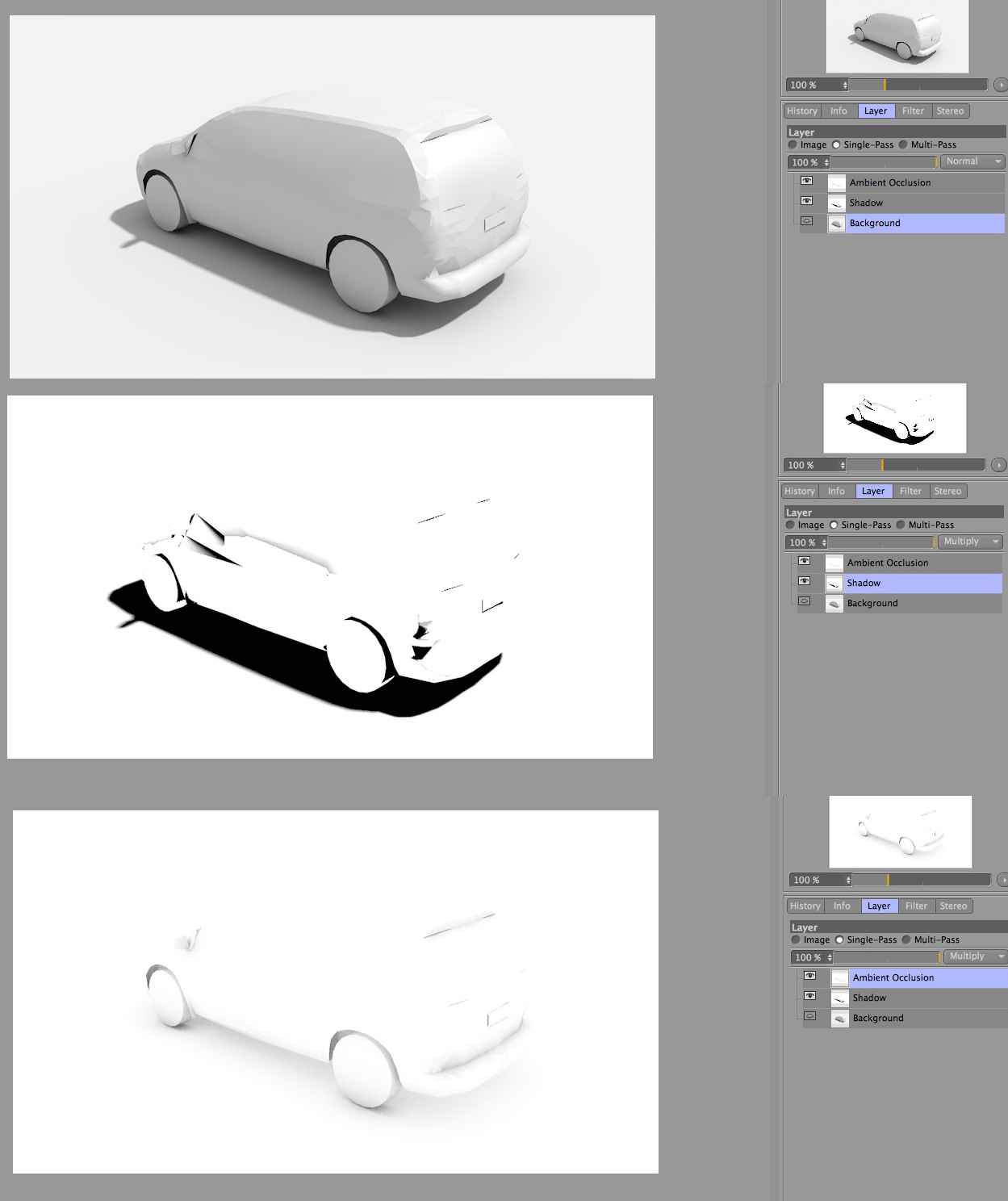 scusa ma forse non ho capito che cosa vorresti ottenere, prova a spiegare meglio cosa ti serve e perchè. Il Separate lights ti permette di isolare il contributo specifico di ogni luce, mentre l'Ambient Occlusion non c'entra niente con le ombre..