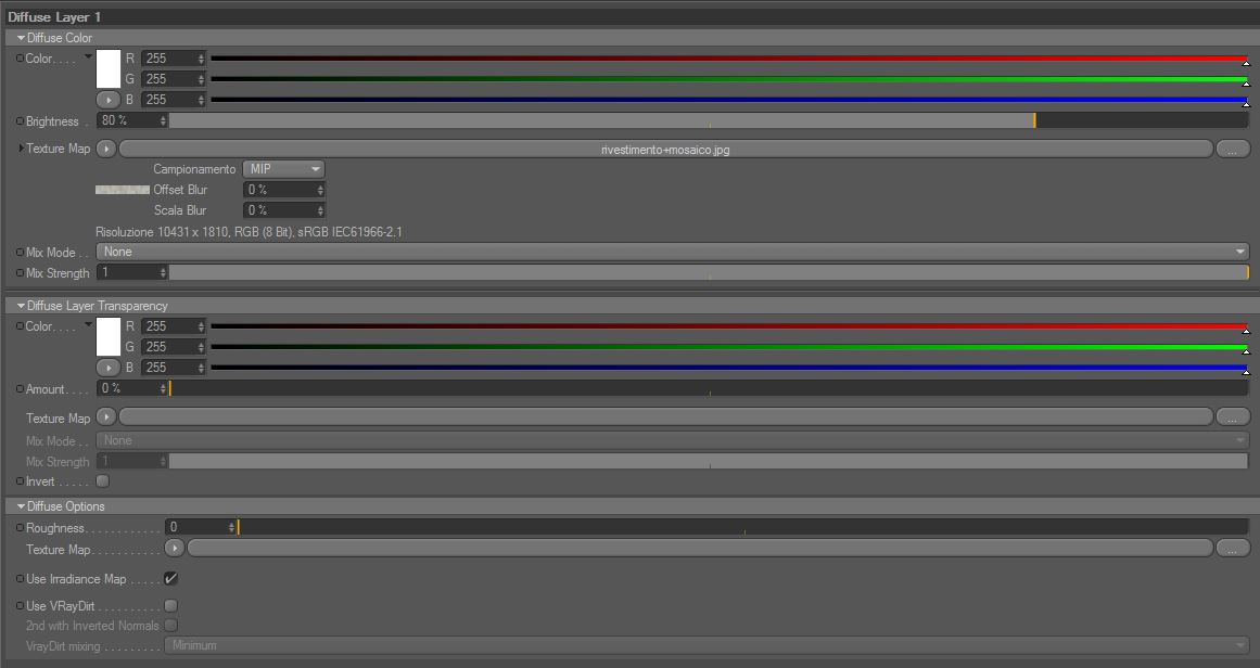 Grazie per l'aiuto! Come hai detto è lo specular che provoca il problema,ho provato a cambiare diminuendo l'amount ti posto i parametri che ho usato.