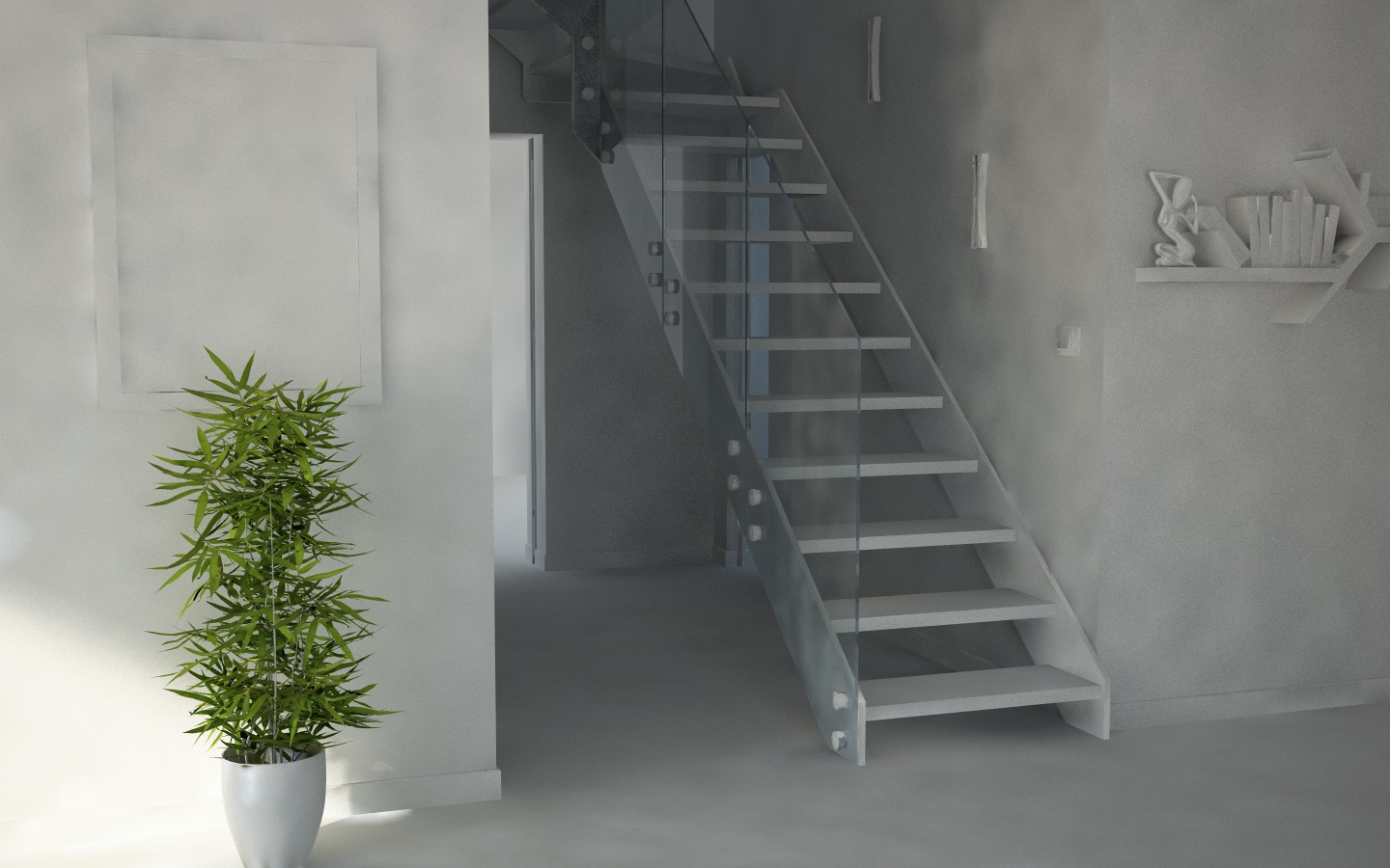 posto il mio primo lavoro con vray, seguendo il capitolo 9 della bellissima guida di c4dzone sto cercando di rappresentare l'interno di una villetta a Laigueglia...L'intervento di restauro prevede l'inserimento di una scala in vetro in una zona abbastanza in ombra. Ci sono un po' di cosette che non mi convincono ma che non riesco a risolvere: il riflesso fucsia nella parte più alta della scala, le texture molto granulari nelle parti più in ombra e il battiscopa nella parte destra che ha un riflesso luminoso strano :? Oltre a questi accorgimenti non sono del tutto convinto di aver posizionato le luci nella maniera ottimale e spero in qualche vostro consiglio...
