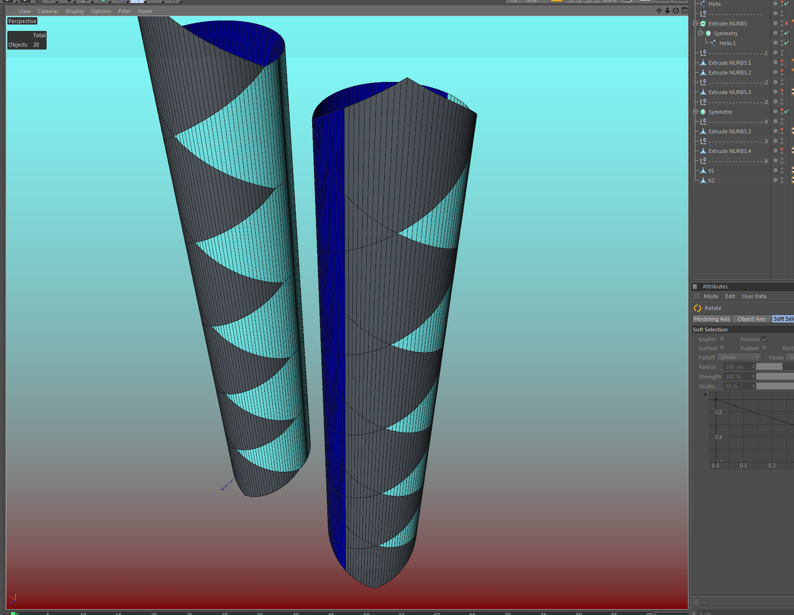 Se sai come funziona geometricamente lo zig zag, basta conoscere gli angoli (i radianti) e puoi costruirla in due modi, attraverso un segmento d´arco (io ho usato la spirale perché permette di impostare anche l´altezza) oppure una volta che hai la mesh cilindrica, tagliandola con il coltello in modalitá "piano" dopo aver ruotato gli assi dell´oggetto che ne so di +45 e -45 gradi, pure questo devi ricavartelo con radianti e altezza o puoi strechare la mesh direttamente in C4D, piú veloce ancora).