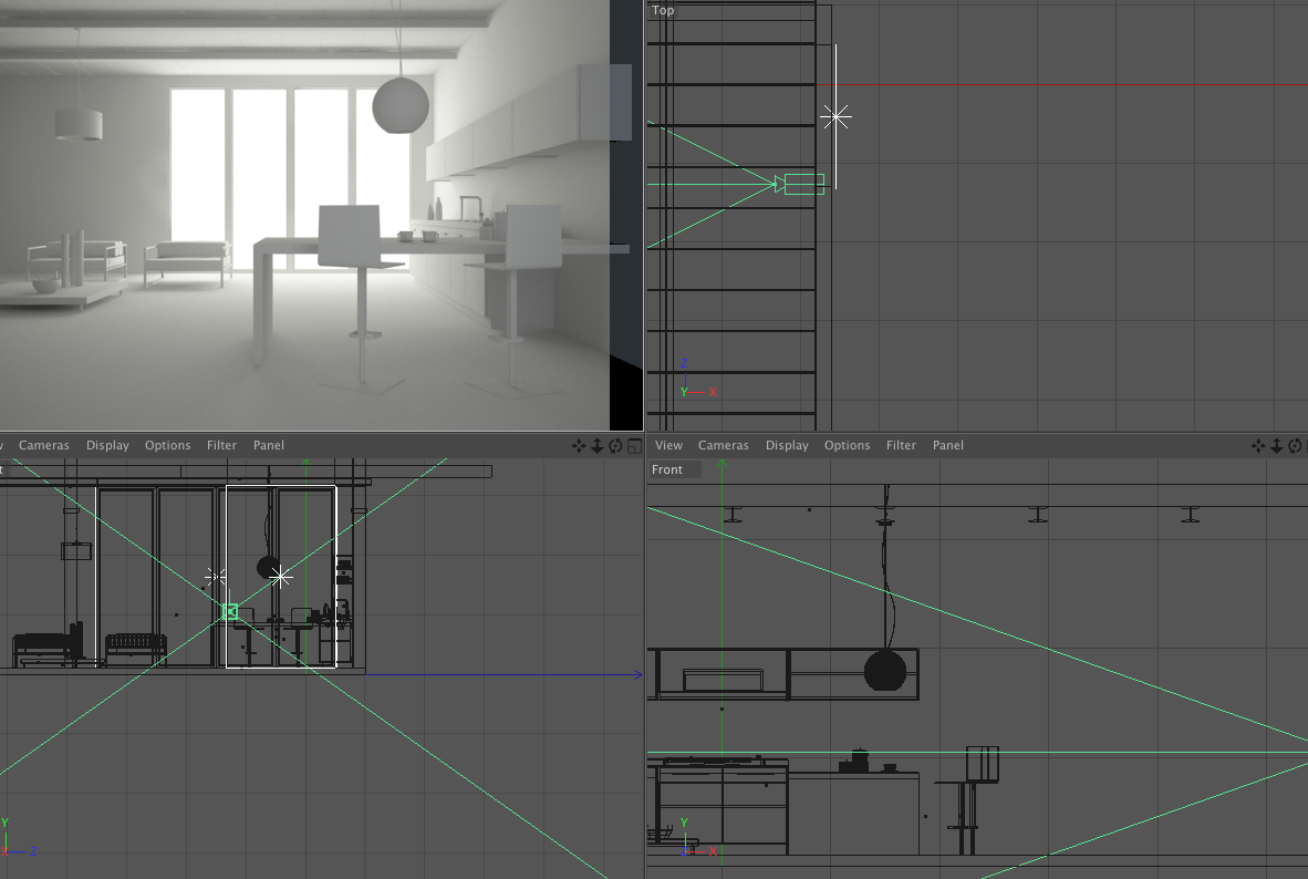 Ho una scena d'interno con una portafinestra frontale. imposto la camera (con tag sphysical e F-stop a 2) e luce area con tag vraylight; enable shadows ecc ecc..