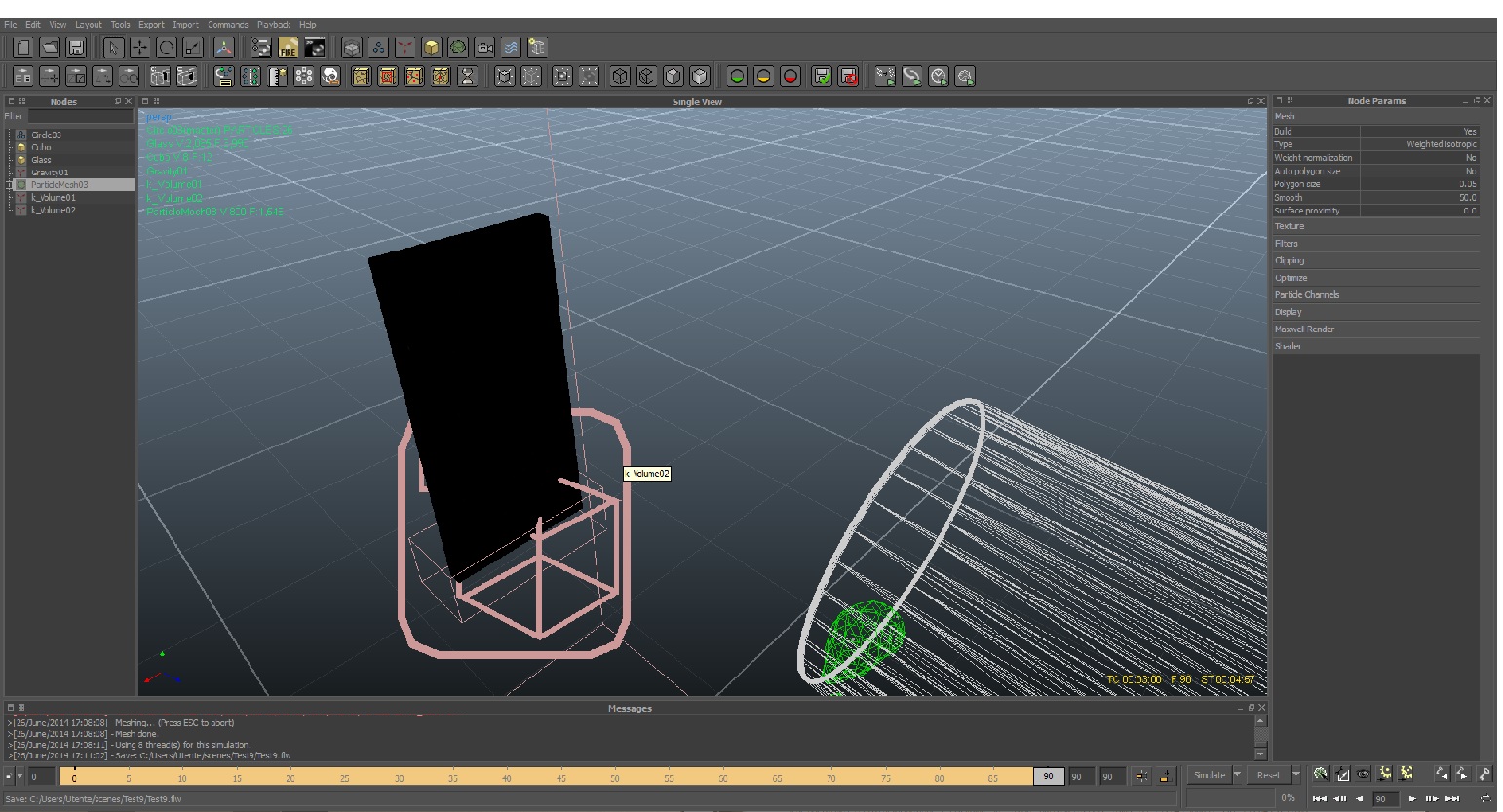 In pratica sto lavorando su uno schizzo d'acqua su un parallelepipedo di piccole dimensioni, il mio scopo è per l'appunto creare una breve animazione dove viene simulato il getto d'acqua. Il problema viene qua, avendo seguito tutte le indicazioni del caso riguardo le proprietà tipiche dell'acqua a fine animazione mi rimangono sempre delle goccie d'acqua attaccate al parallelepipedo creandomi un brutto effetto visivo( come da allegato).