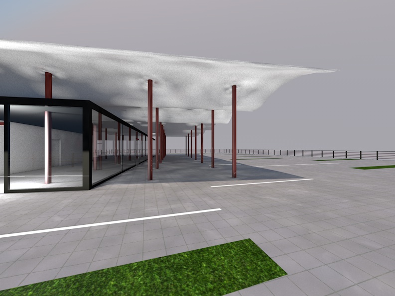 Quelle strisce a terra bianche dovrebbero esser delle luci. Ci ho applicato il materiale autoilluminante, solo che avendolo preso da un file vecchio era impostato a 800 di intensità e questo mi creava quelle macchie sulla falda ondulata.