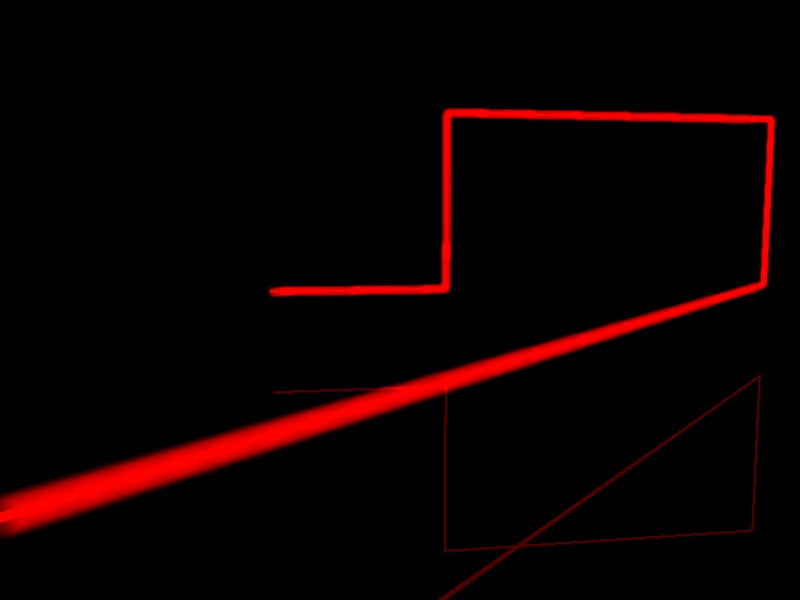 Come esperimento ludico stavo provando a creare un fascio di luce che riproducesse un laser (al momento senza successo), che fosse riflesso da specchi posti ad angolazioni predeterminate.