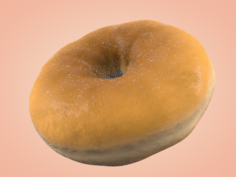 Il tuo risultato con lo zucchero, non mi convince molto perché non ha spessore, ti avevo consigliato una copia della mesh ( anche spittano solo la parte superiore della ciambella ) proprio perché utilizzando un layer nel canale dispacement con una vertexmap, potevi controllare minuziosamente la quantità di zucchero ( in particolare sui bordi ) comunque ... va bene anche così...