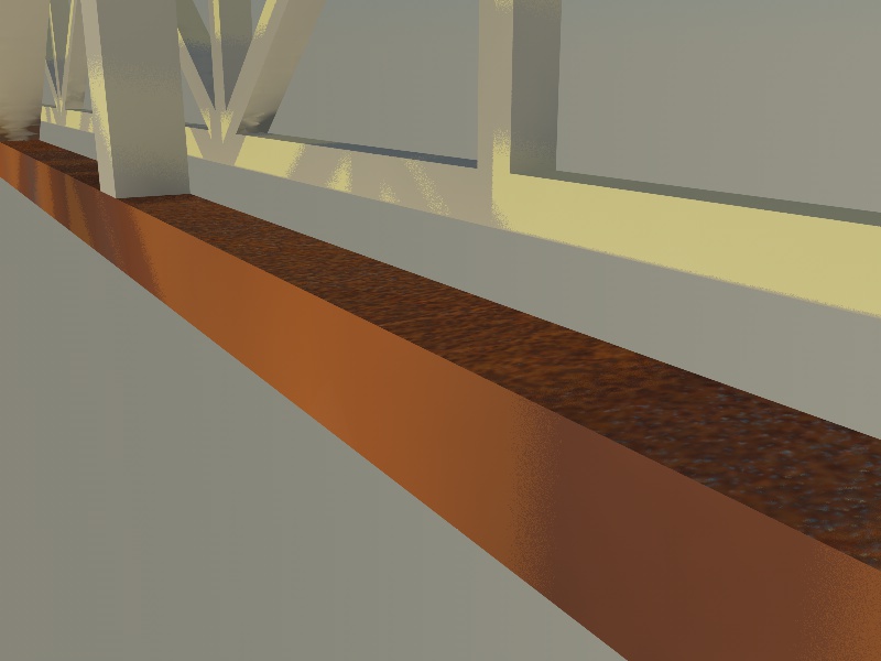 Infine ho una domanda. L'acciaio arancione applicato alle reticolari viene piuttosto granuloso. Secondo voi è un problema di settaggi render (queste prove ovviamente sono alla qualità più bassa possibile) oppure di texture?
