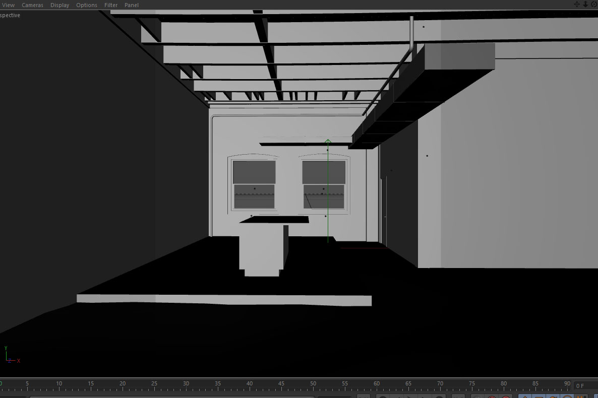 mi piacciono molto le irregolarità che stai facendo, il pavimento, il lampadario storto, gioveranno sicuramente all'effetto finale di disordine e vissuto. Non mi fa impazzire l'immagine storta, per quanto lo sia anche la reference, io la farei dritta.
