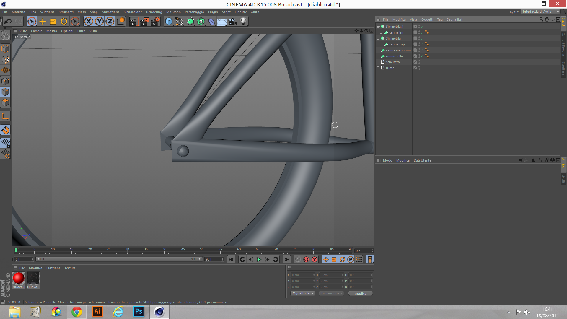 salve, sto cercando di modellare una bicicletta, essendo il mio primo modelling procedo molto a rilento ma spero di finirla al più presto in quanto ne ho bisogno per un esame il prossimo mese.