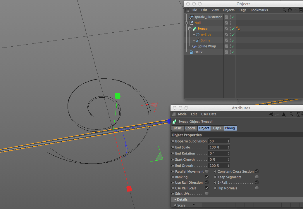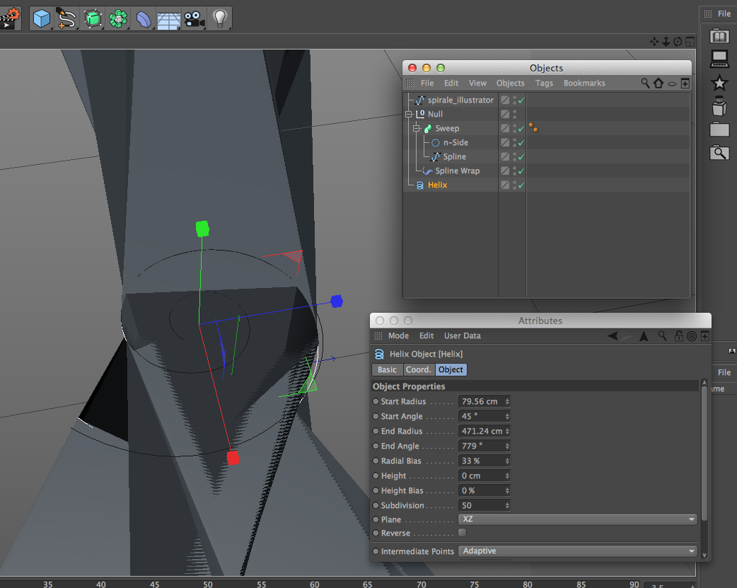 Perdonatemi ma sono veramente alle prime armi! Neppure giocando con l'orientamento degli assi dello spline o con i parametri della helix riesco a farlo funzionare!