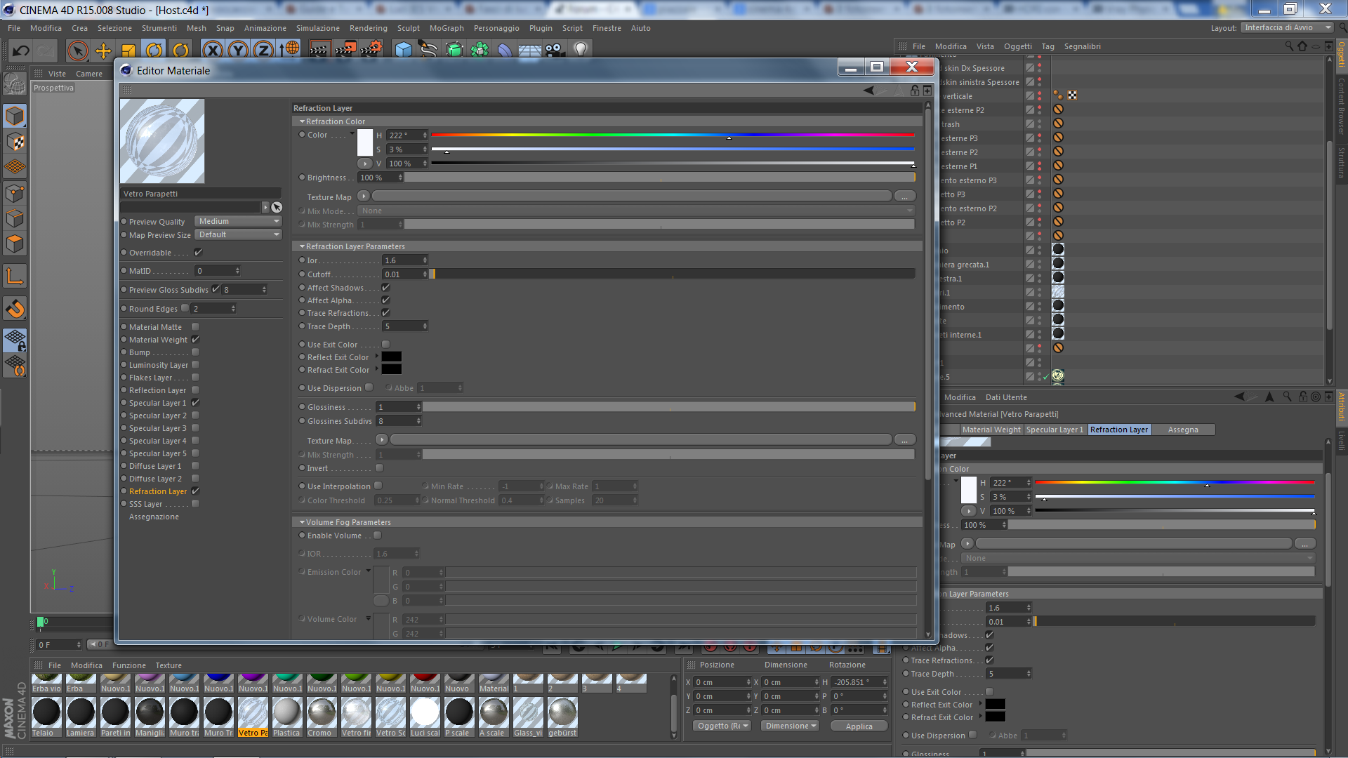come indice IOR il vetro ha l'1.33...ma se vuoi più riflessioni lascialo di default o aumentalo