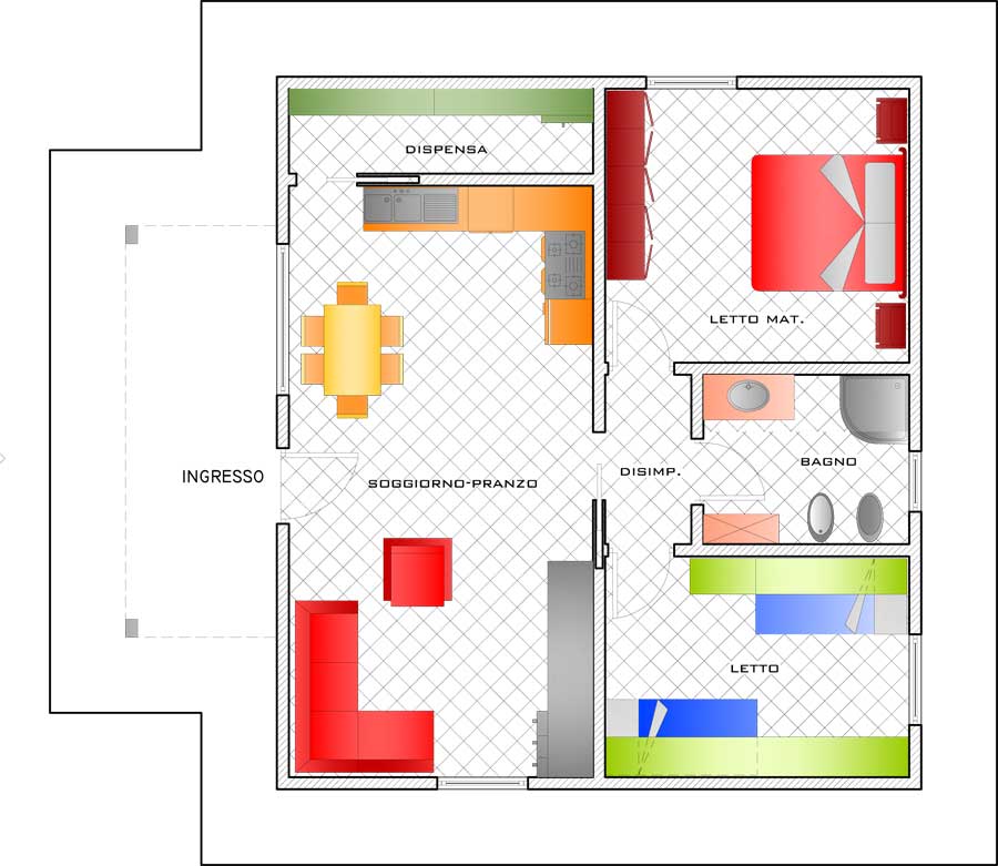ho scaricato da internet la piantina allegata,dovrebbe essere scala 1:100 se non erro, ho iniziato a crearla in C4d. ultimate le mura perimetrali, ho messo una camera normalissima dentro una stanza per vedere un po gli spazi e sembra una casa per bambole..