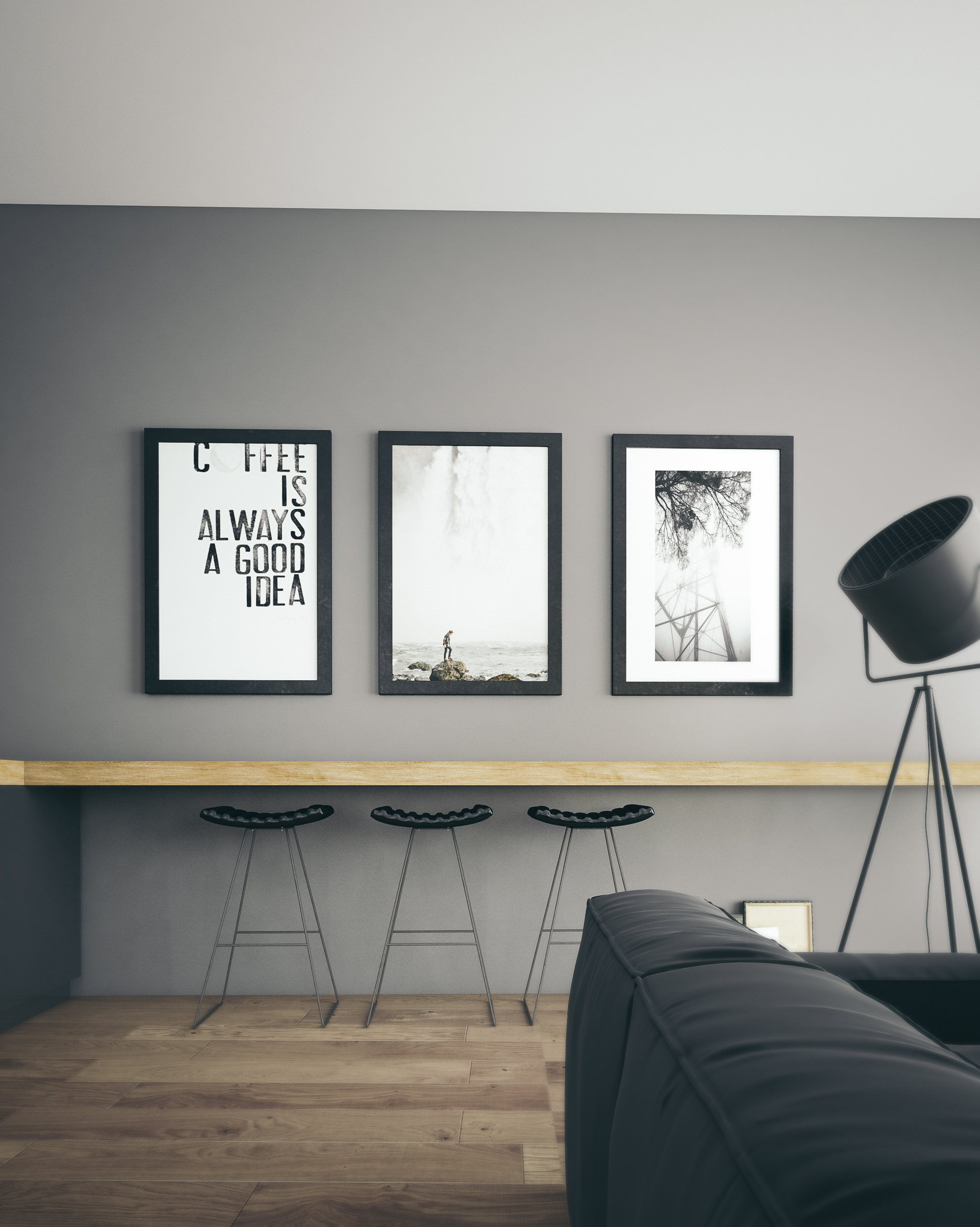 ciao, a me non piace molto il materiale del divano, non si capisce bene cos'è? sembra velluto ma non sono sicuro. Inoltre nella seconda immagine sia il divano che il tappeto mi sembra che non producano ombre, mi viene da pensare che il tappeto sia bidimensionale e il divano affogato dentro. I muri che materiale hanno? mi sembrano un po' piatti.