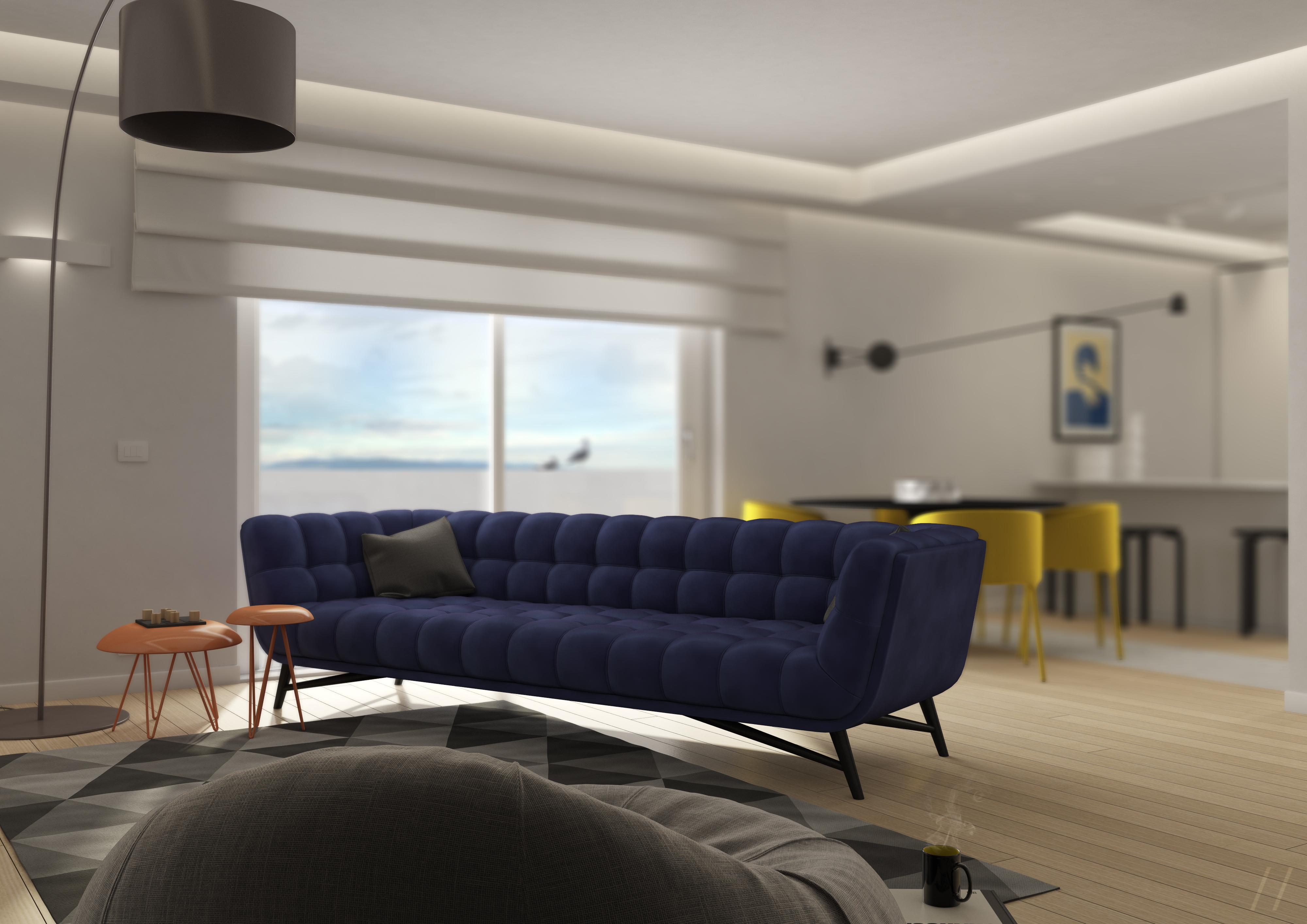 Mi piacciono le inquadrature ma trovo il dof non corretto e da l'effetto casa delle bambole, inoltre il divano blu sembra incollato in post, bellissima la poltrona