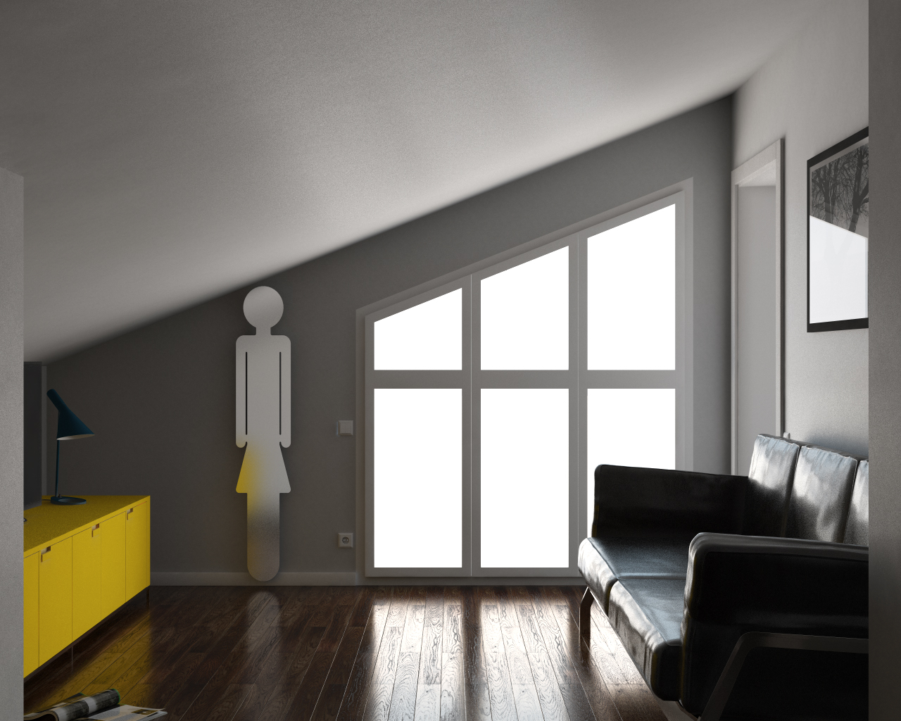 Per quanto riguarda la composizione infissi bianchi opachi, muri bianchi opachi, mobile giallo canarino opaco la figura "bagno delle femmine" satinata e lampada blu.. completamente l'opposto dei miei gusti, naturalmente qui si tratta di opinione personale