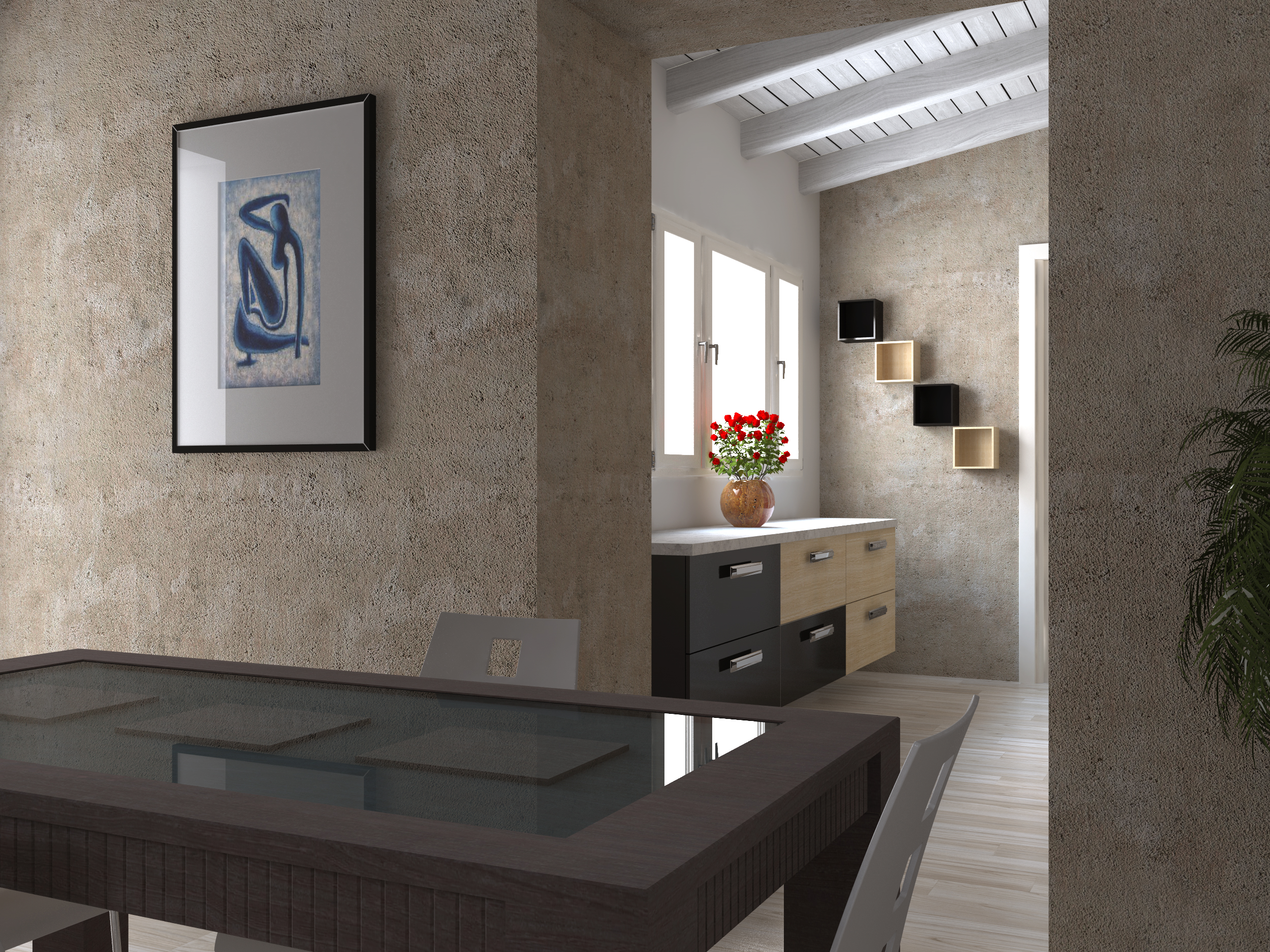 posso chiederti quale texture hai utilizzato per fare il materiale sul muro che si vede bene sulle ultime due immagini? quello tipo carparo..
