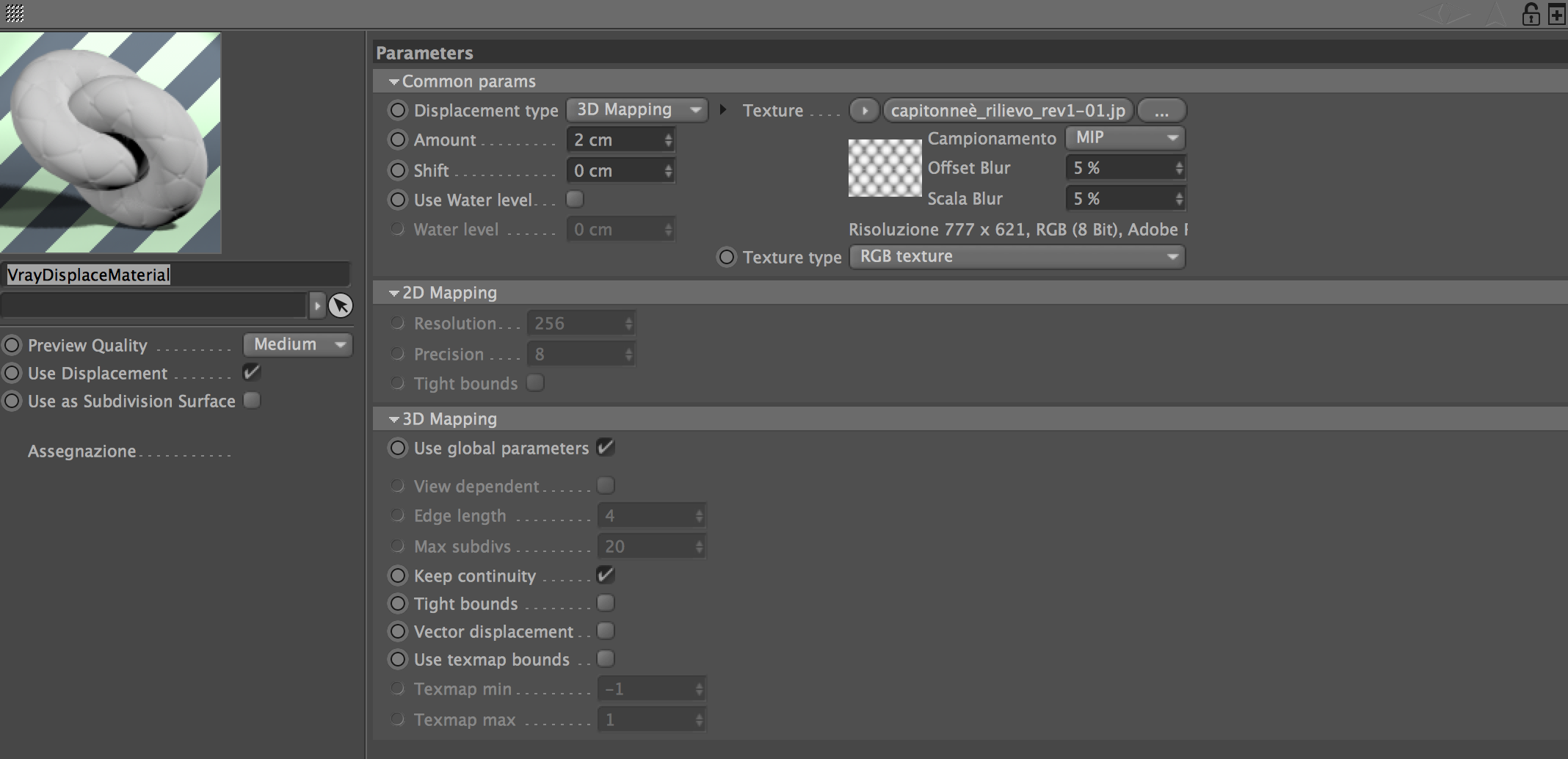 di recente mi è capitato di dover affrontare il problema displaceMaterial per vray, ma essendo alle prime armi(molto alle prime armi), ho davvero molti problemi nella realizzazione dell'immagine finale. Ho letto anche il manuale, tuttavia non sono riuscita a risolvere il problema. Vi posto alcune immagini del risultato e delle impostazione, forse in questo modo sarete in grado di capire il problema. In alcuni casi nonostante spunti l'opzione "senza cuciture" continua a segnarmi il punto di congiunzione della texture, oppure, l'oggetto non viene rivestito in modo uniforme. Grazie mille in anticipo per chi risponderà!! :)