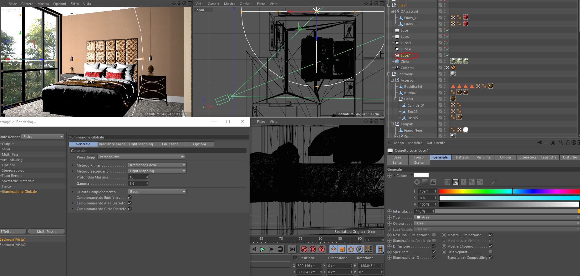 Luce d'aiuto. Magari si potrebbe fare senza.Ma mi piaceva l’idea che ha usato Ocman in un topic nella sezione Vray . Due luci area, una fredda altra calda