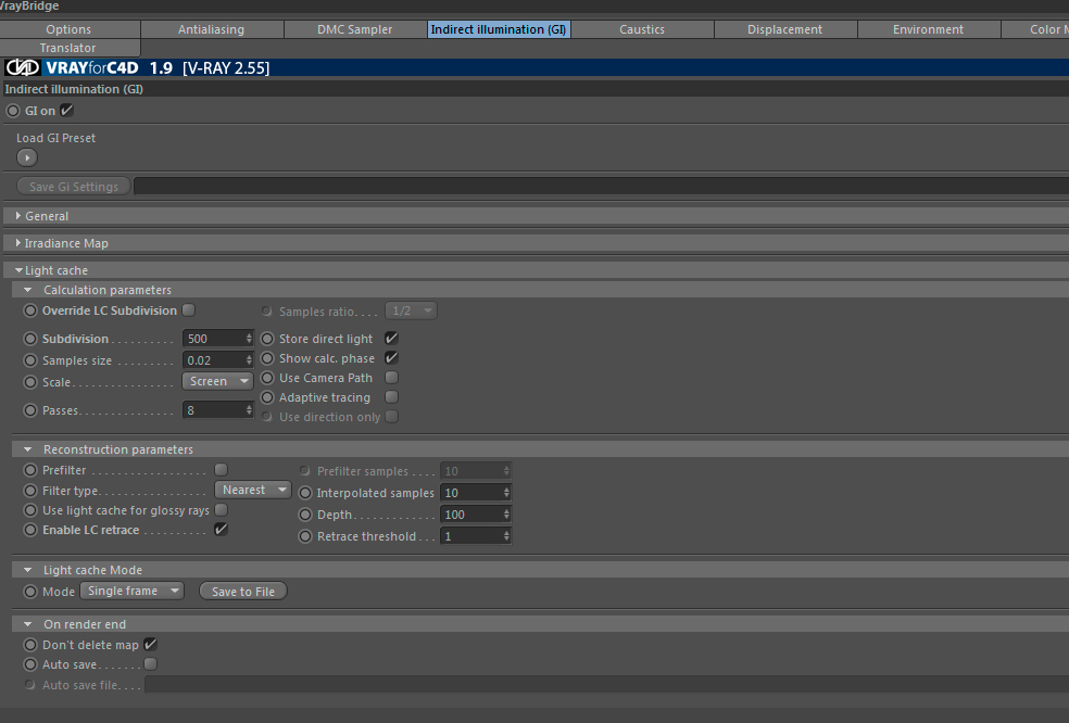 in allegato tutti i settaggi con un nuovo render