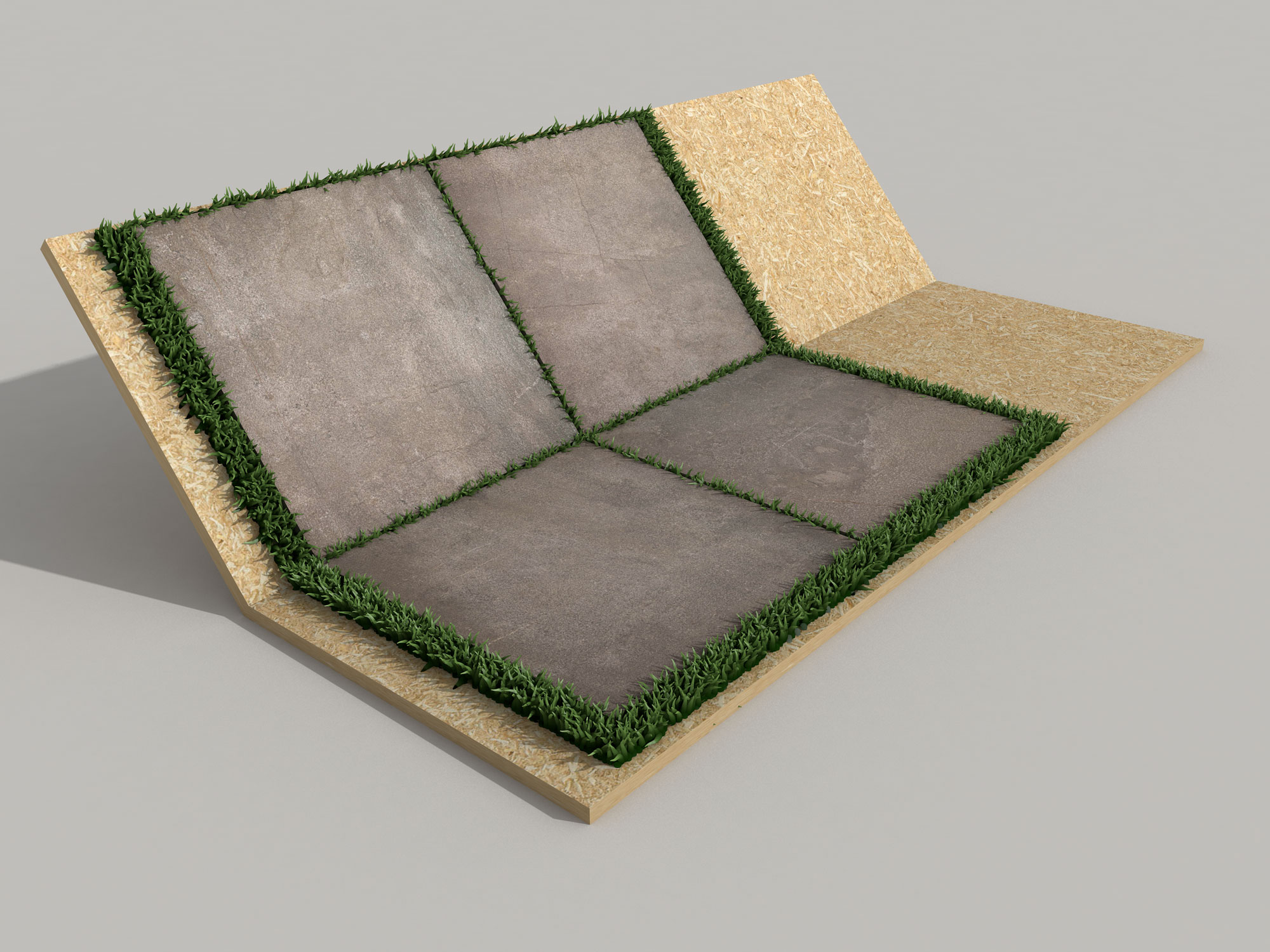 Erano oggetti piccoli, semplici pannelli con poche piastrelle e intorno un po' di erba artificiale. Quindi sono stati velocissimi da renderizzare.