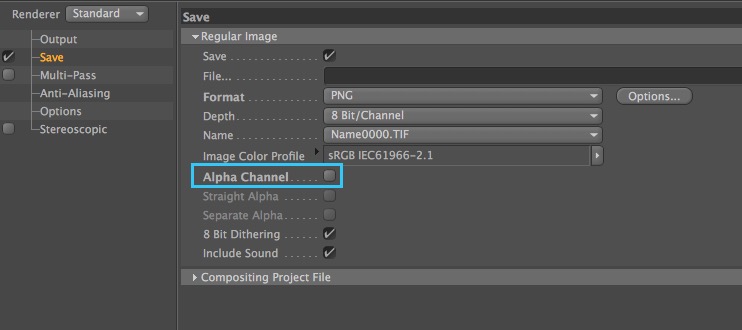Grazie, anche io uso cinema in inglese perchè mi trovo meglio. Sono riuscito a mettere i tag, quindi a togliere il pavimento ed il cielo. Ma quando faccio il rendering lo sfondo è nero e non trasparente. come faccio ad averlo trasparente?