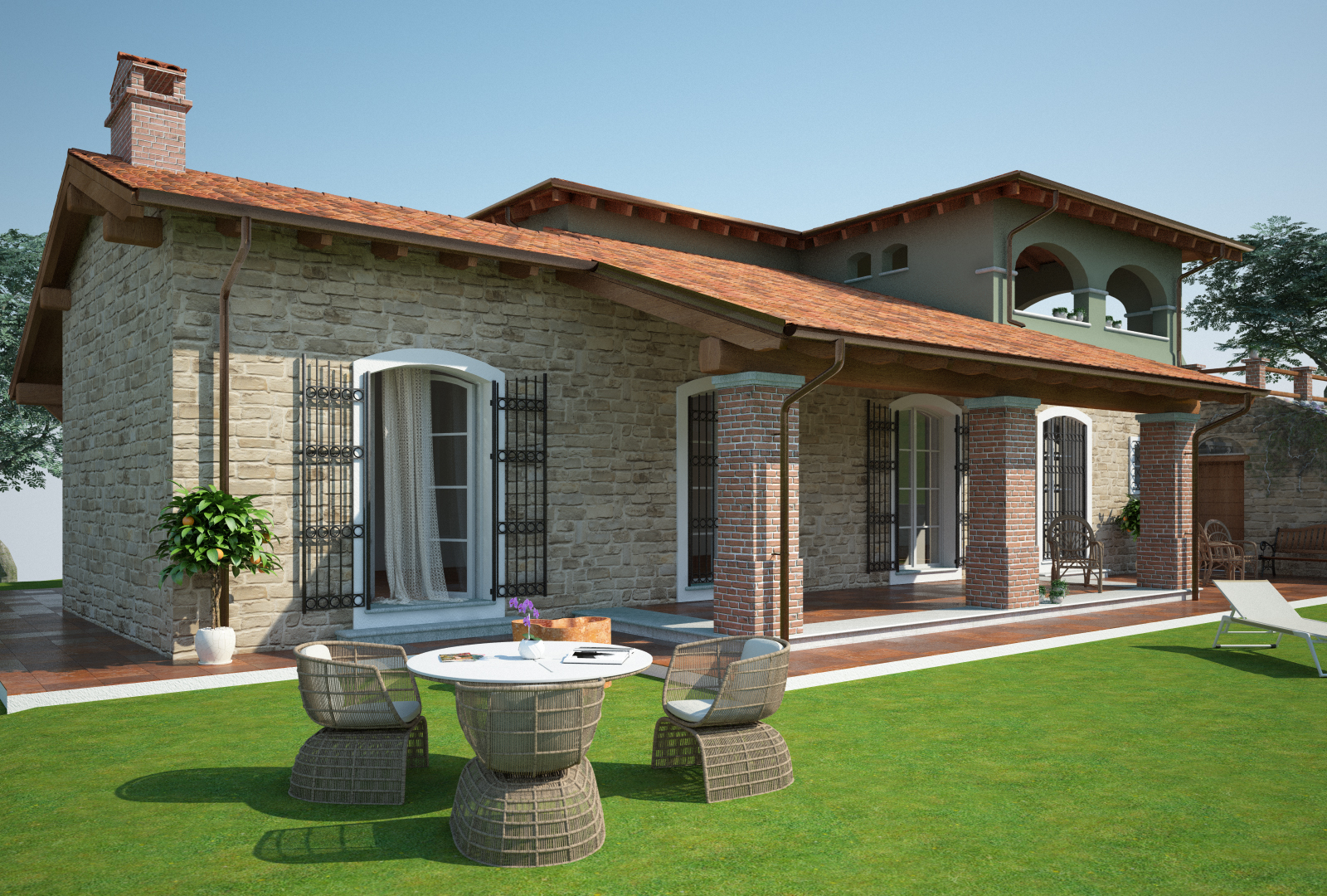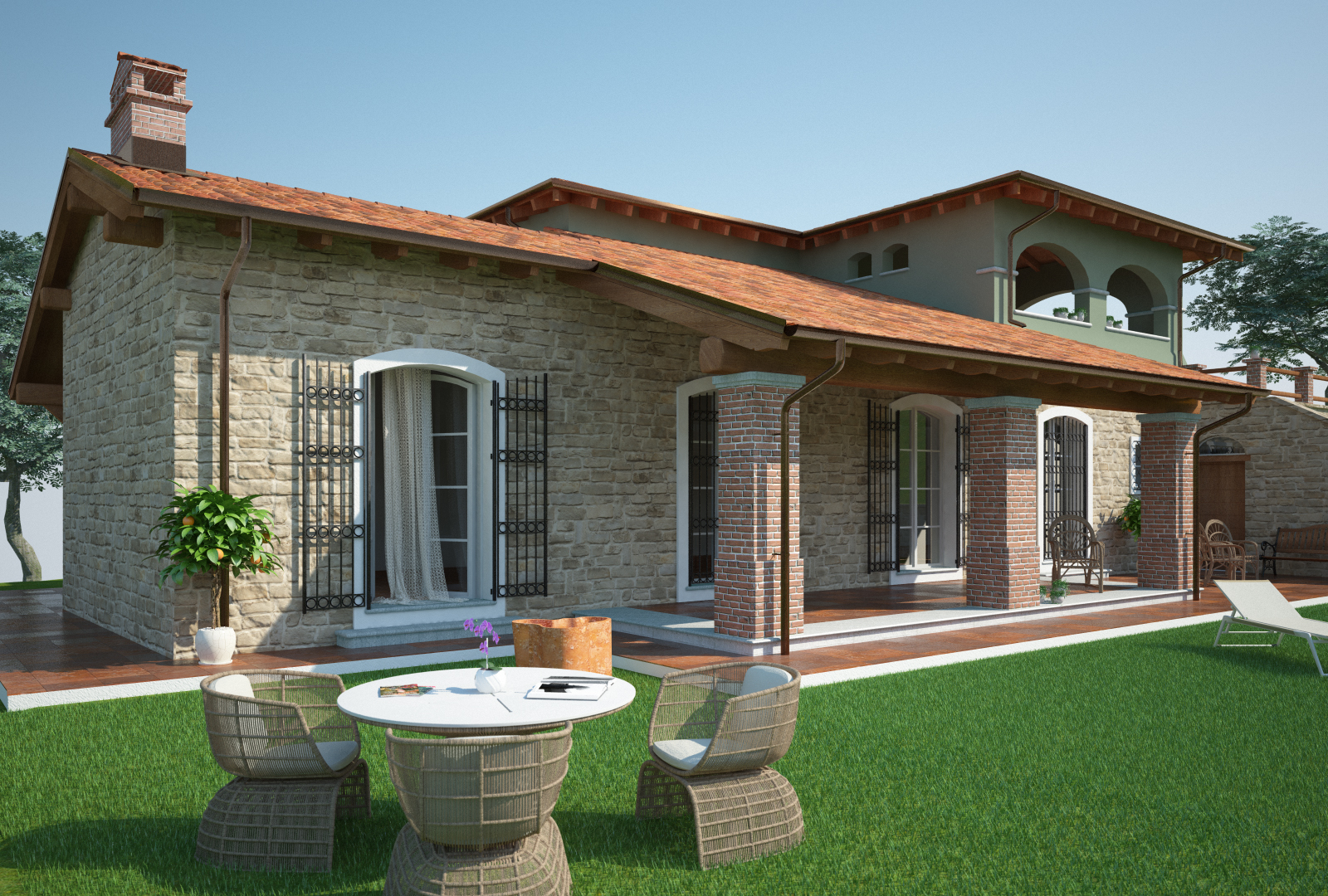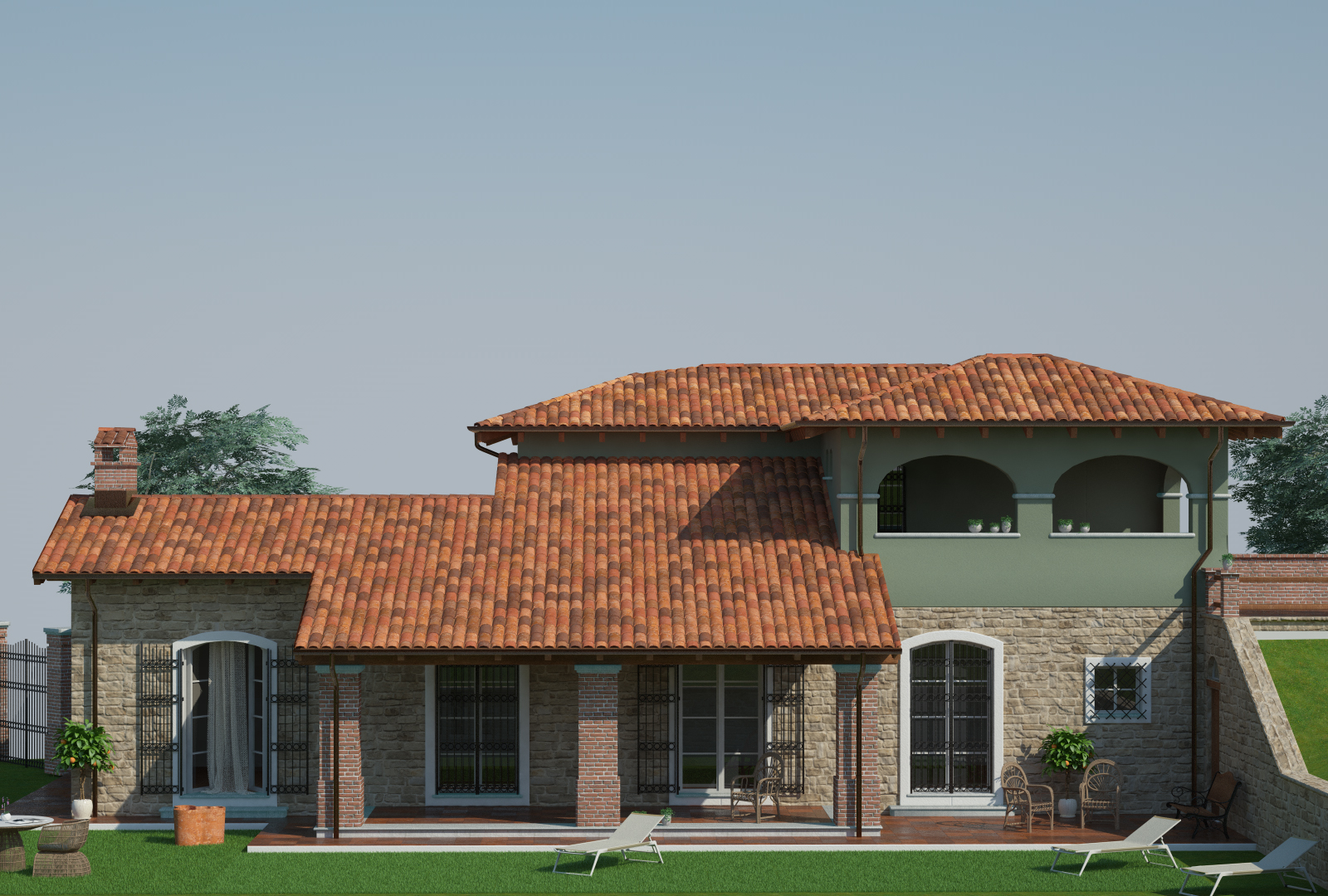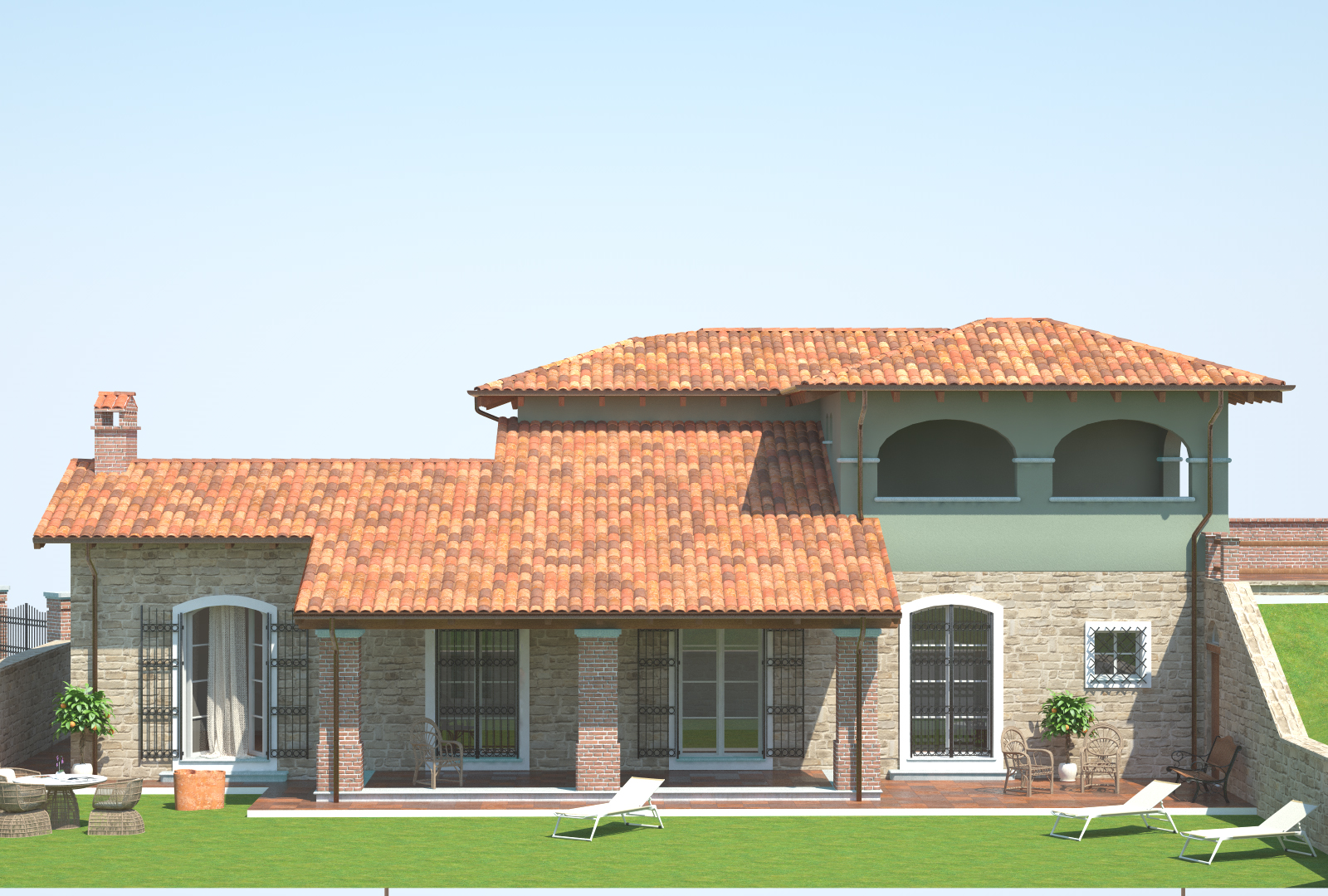 Ho lavorato parecchio sui materiali con particolare riferimento all'erba e al rivestimento in pietra delle murature.